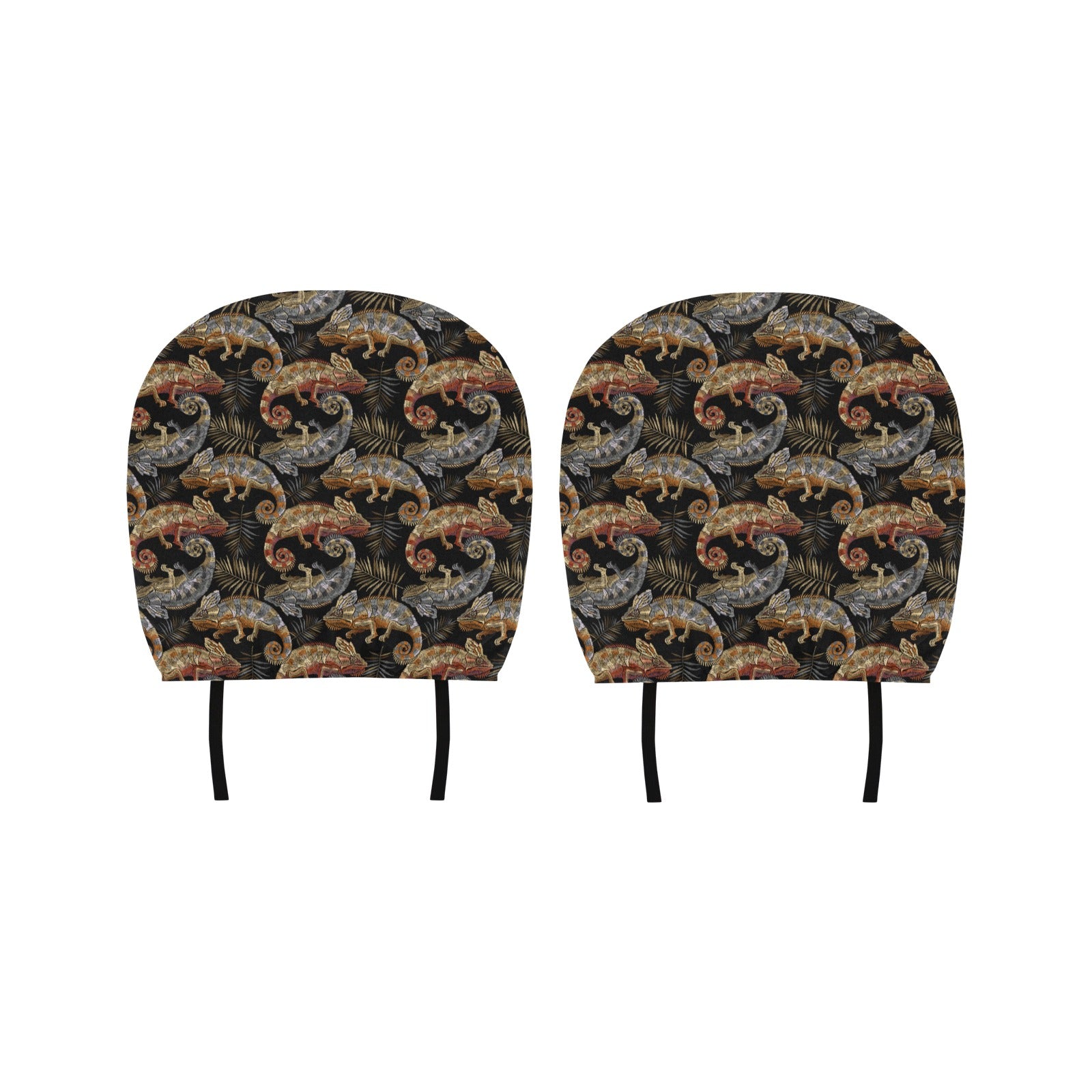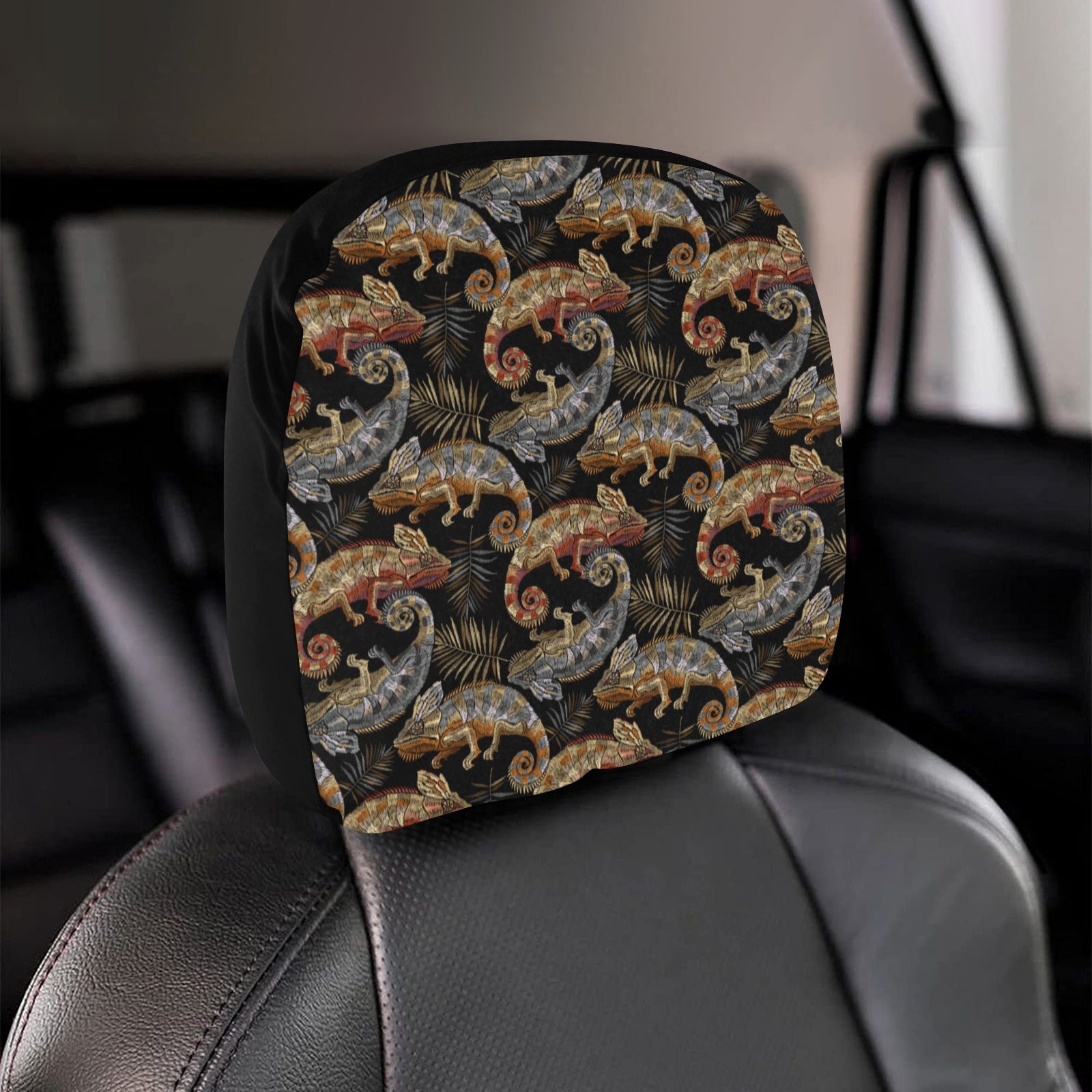 Chameleon lizard tropical leaves palm tree Car Headrest Cover