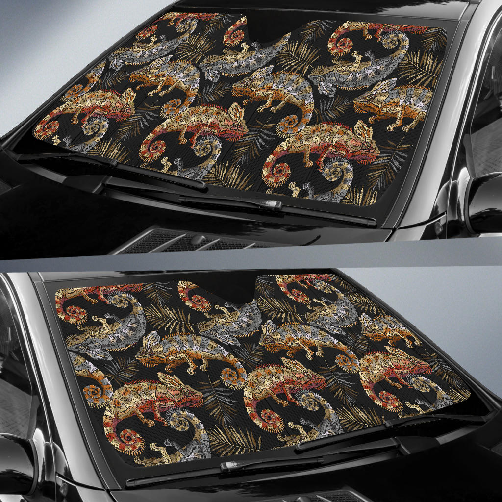 Chameleon Lizard Tropical Leaves Palm Tree Car Sun Shade