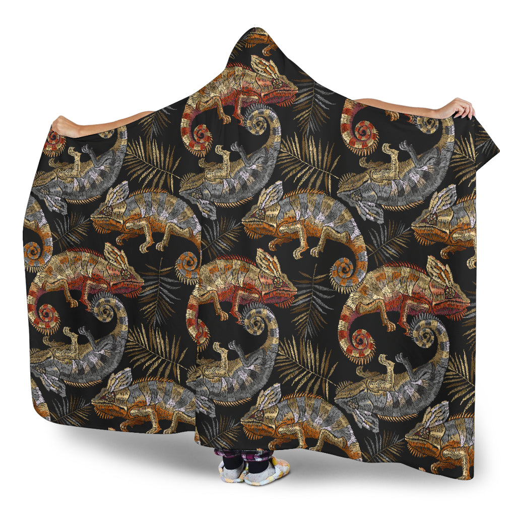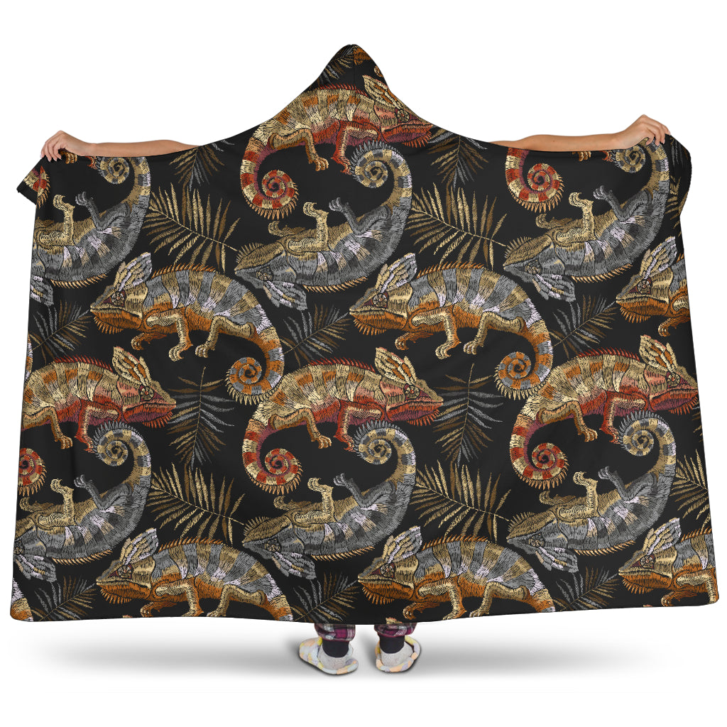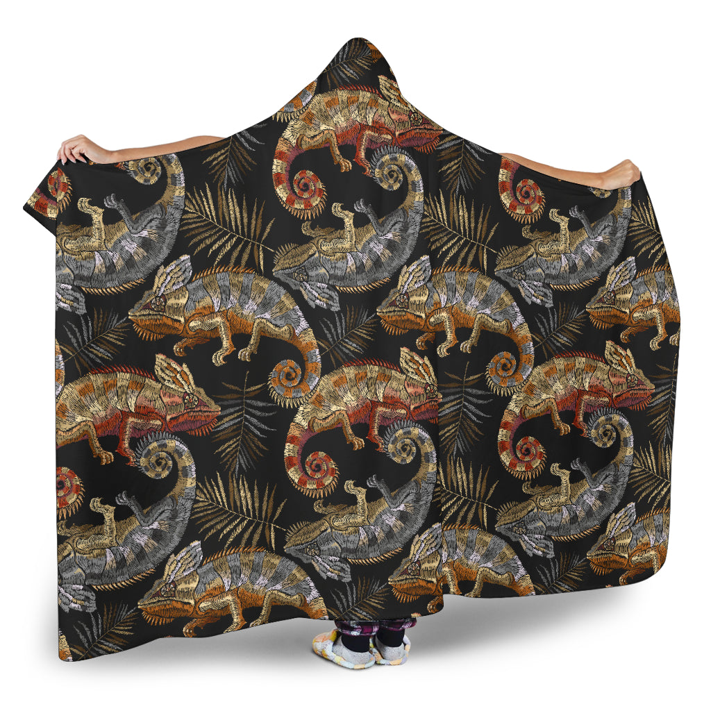 Chameleon lizard tropical leaves palm tree Hooded Blanket are custom-made-to-order and handcrafted to the highest quality standards.