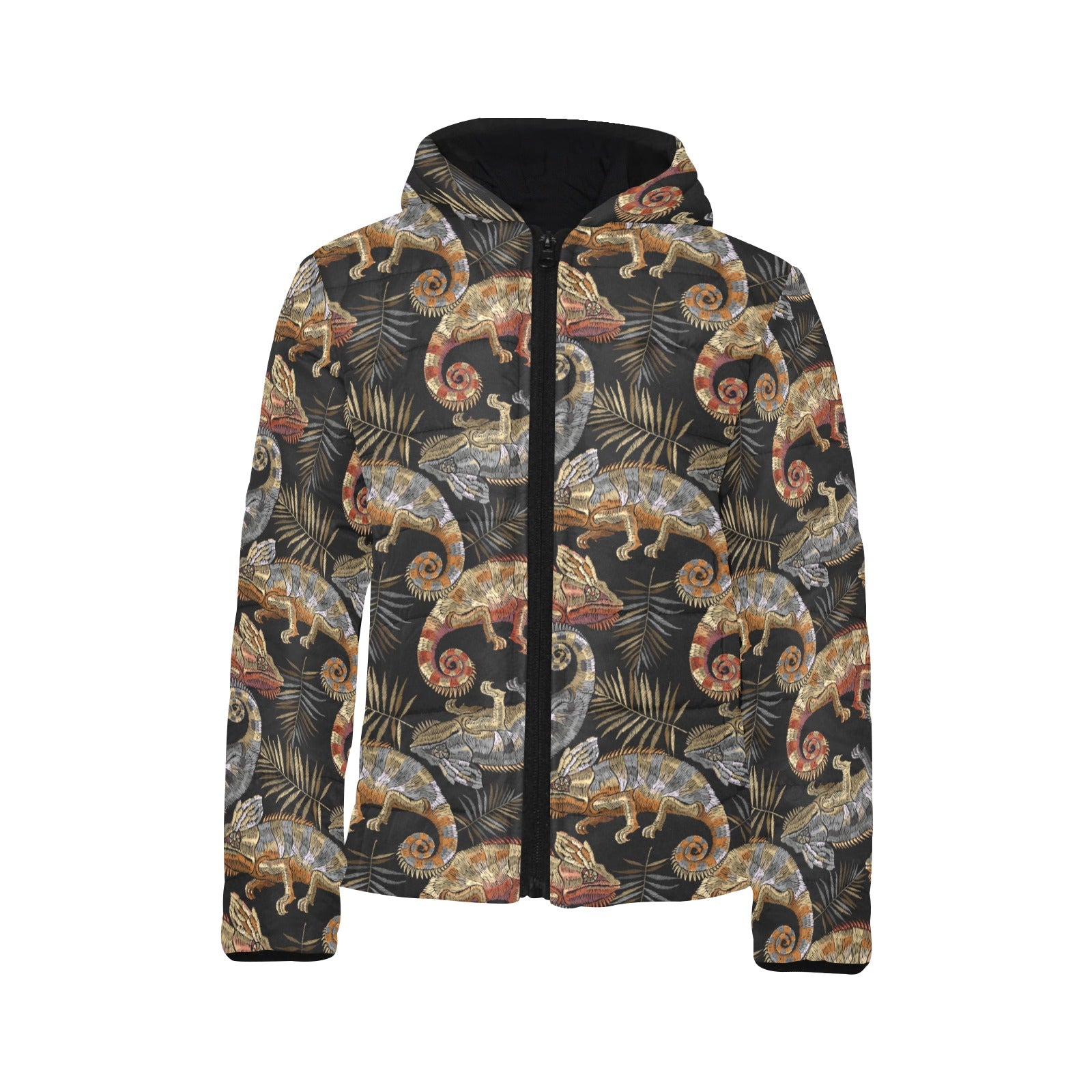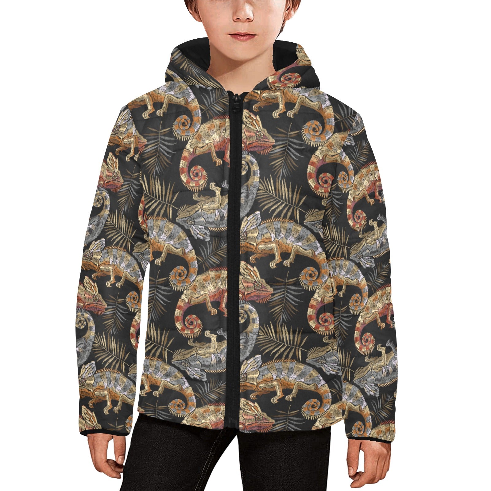 Chameleon lizard tropical leaves palm tree Kids' Boys' Girls' Padded Hooded Jacket