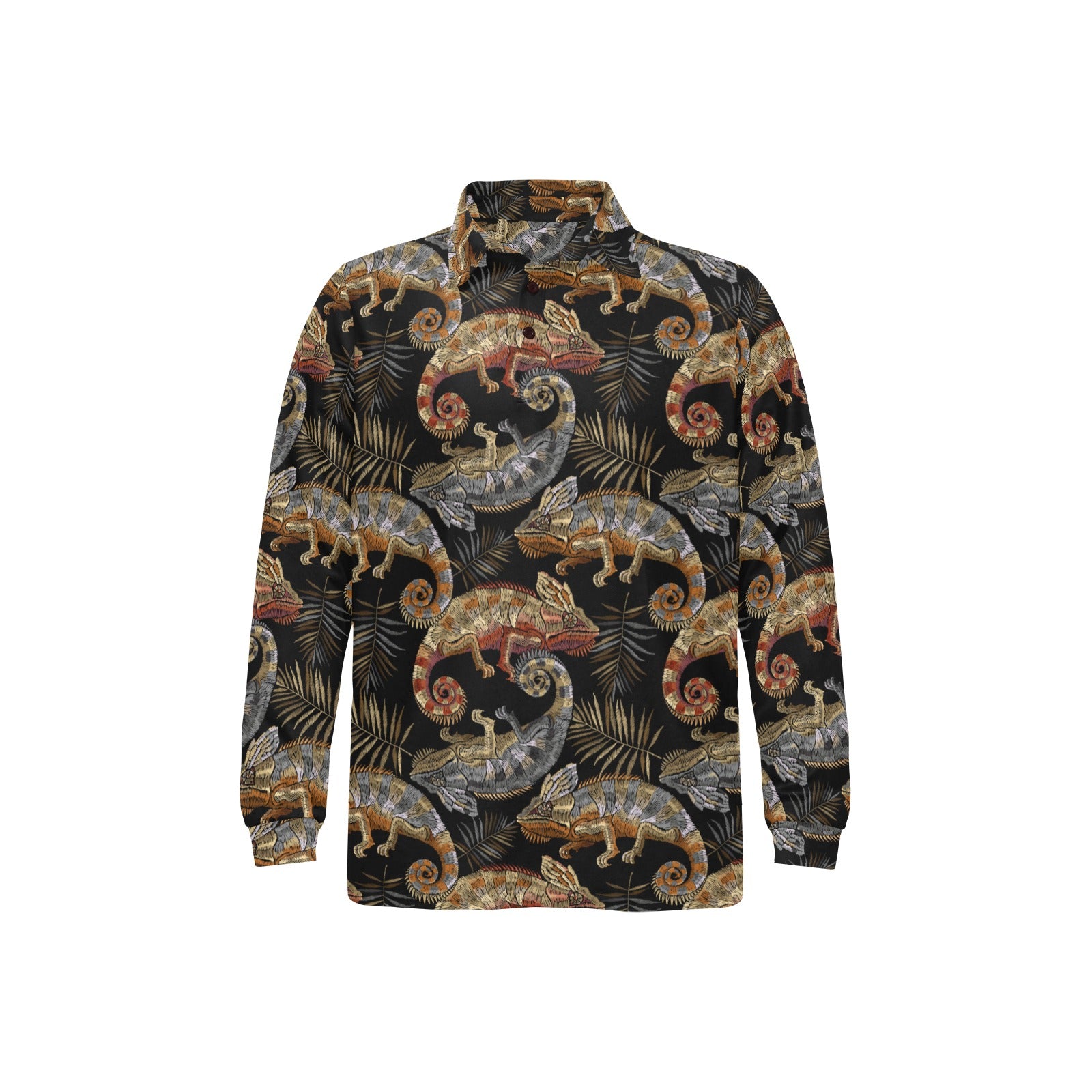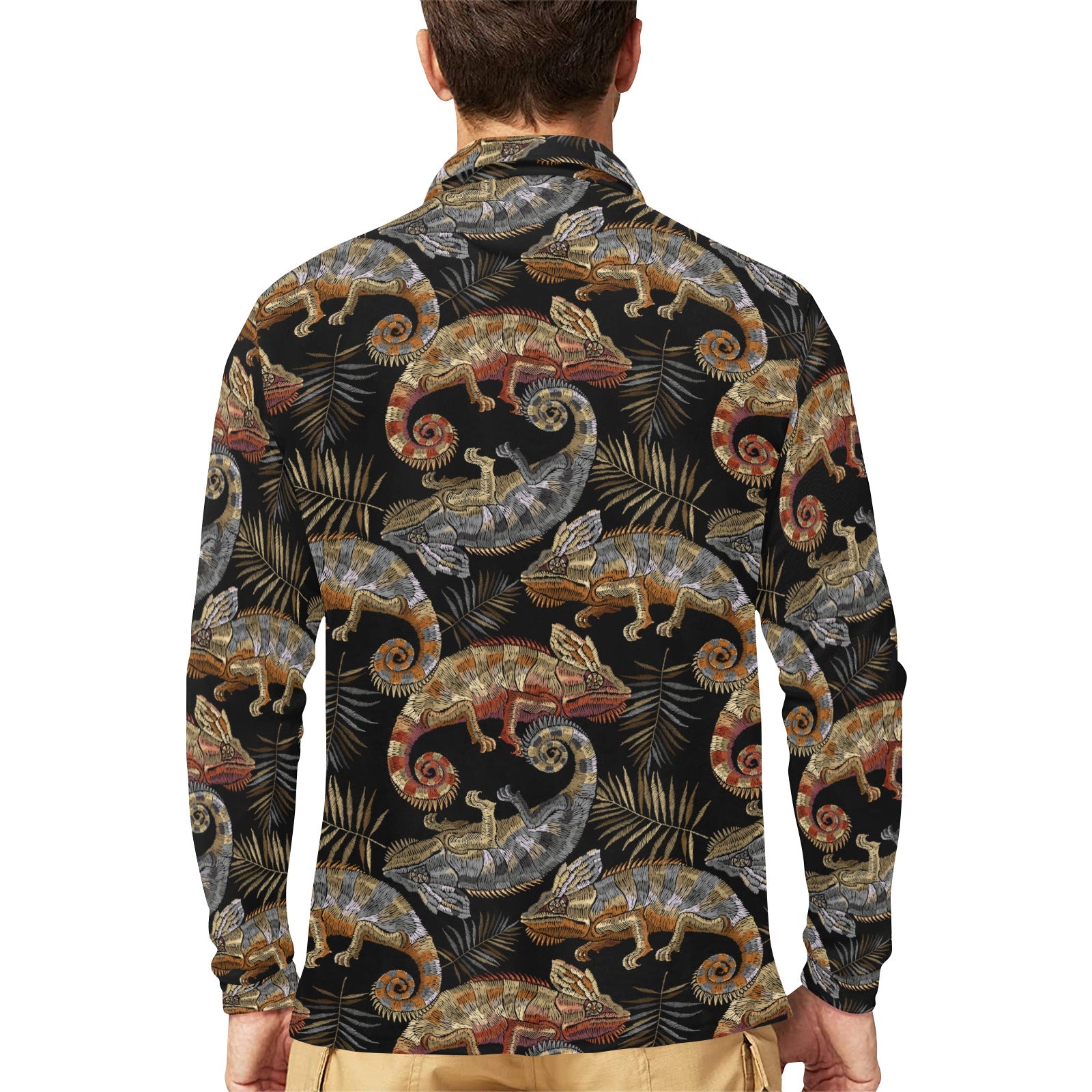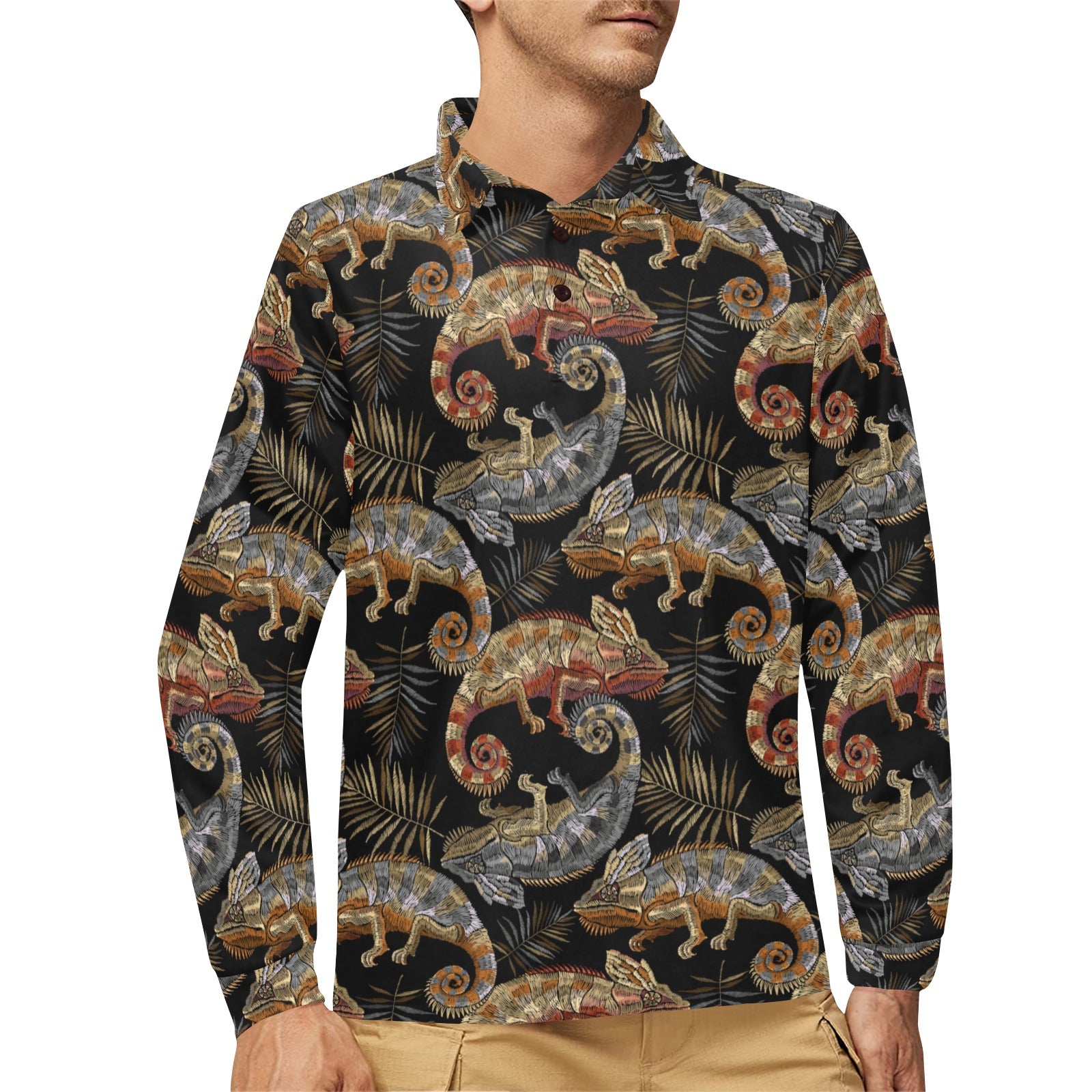 Chameleon lizard tropical leaves palm tree Men's Long Sleeve Polo Shirt