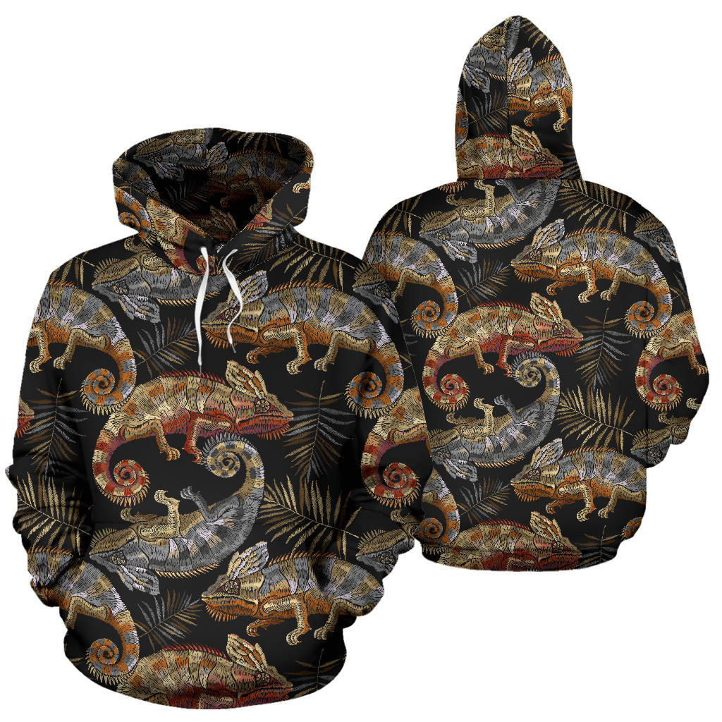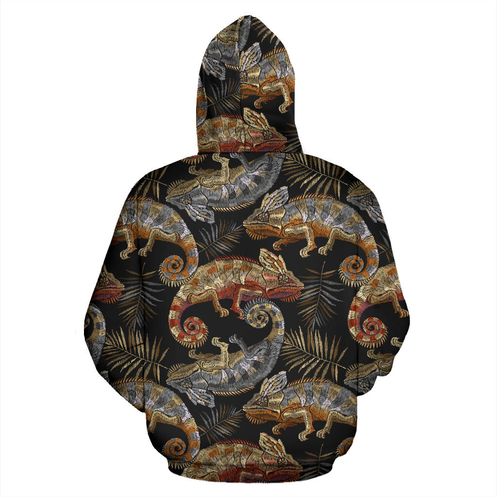 Chameleon Lizard Tropical Leaves Palm Tree Men Women Pullover Hoodie