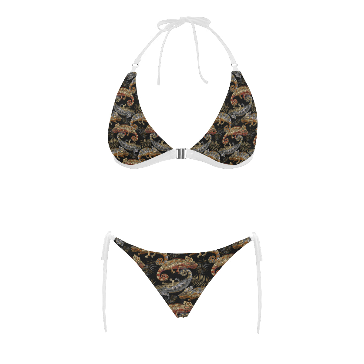 Chameleon lizard tropical leaves palm tree Sexy Bikinis Two-Piece Swimsuits are uniqued design and limited item. It made to order, hand printed, and sewn with love in our factory.