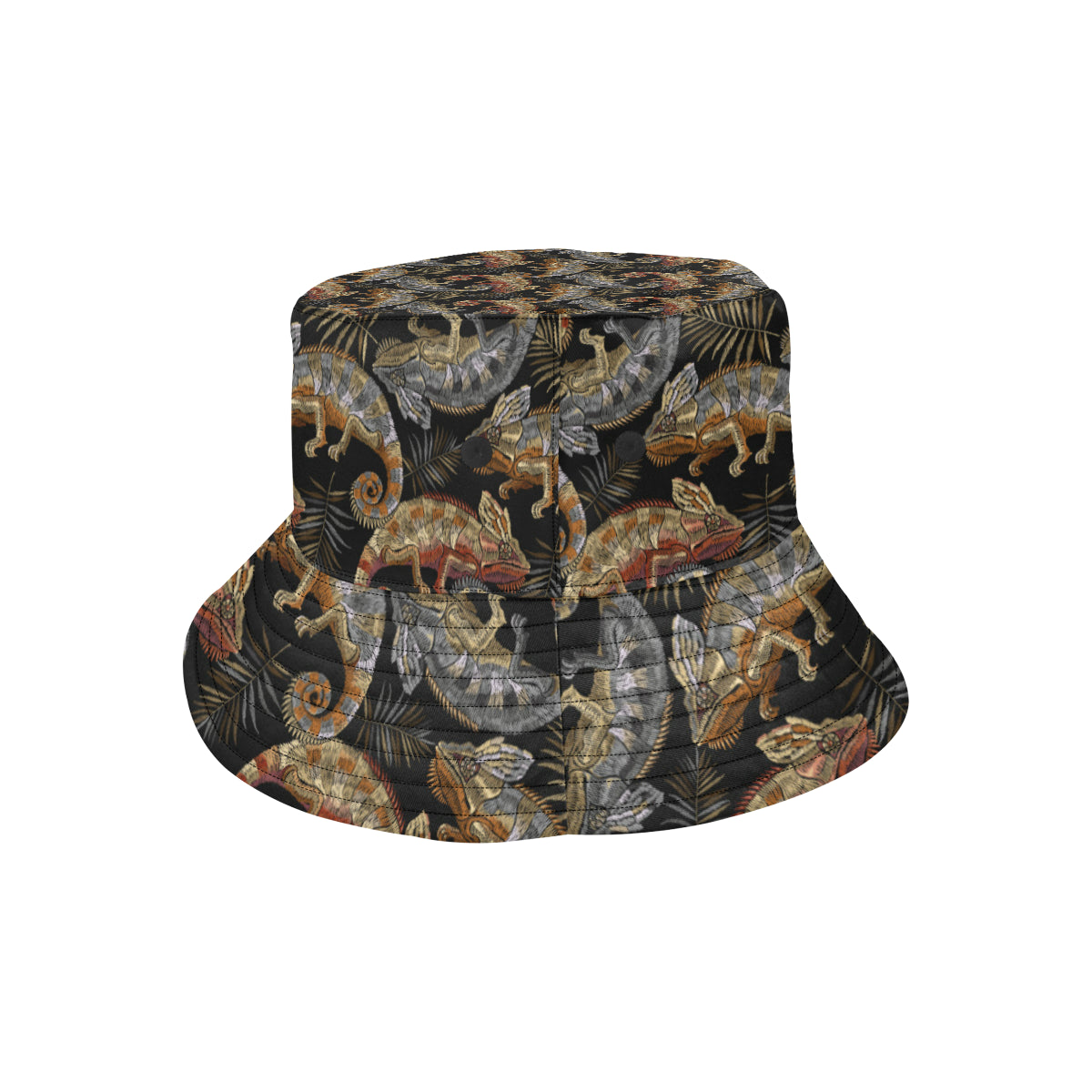 Chameleon lizard tropical leaves palm tree Unisex Bucket Hat is a uniqued design and limited item. It made to order, hand printed, and sewn with love in our factory.