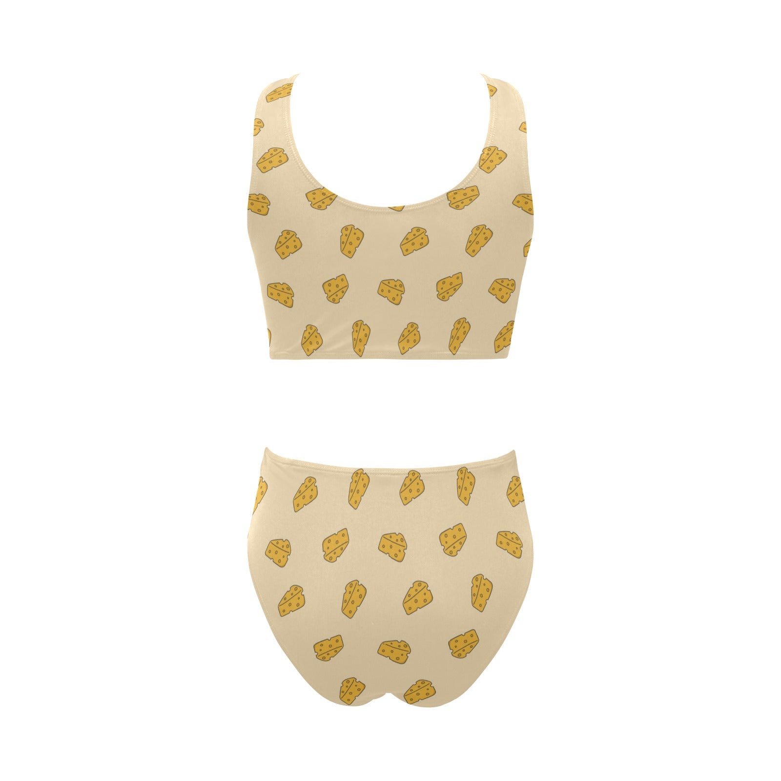 Cheese pattern Chest Bowknot High Waisted Bikini Swimsuit