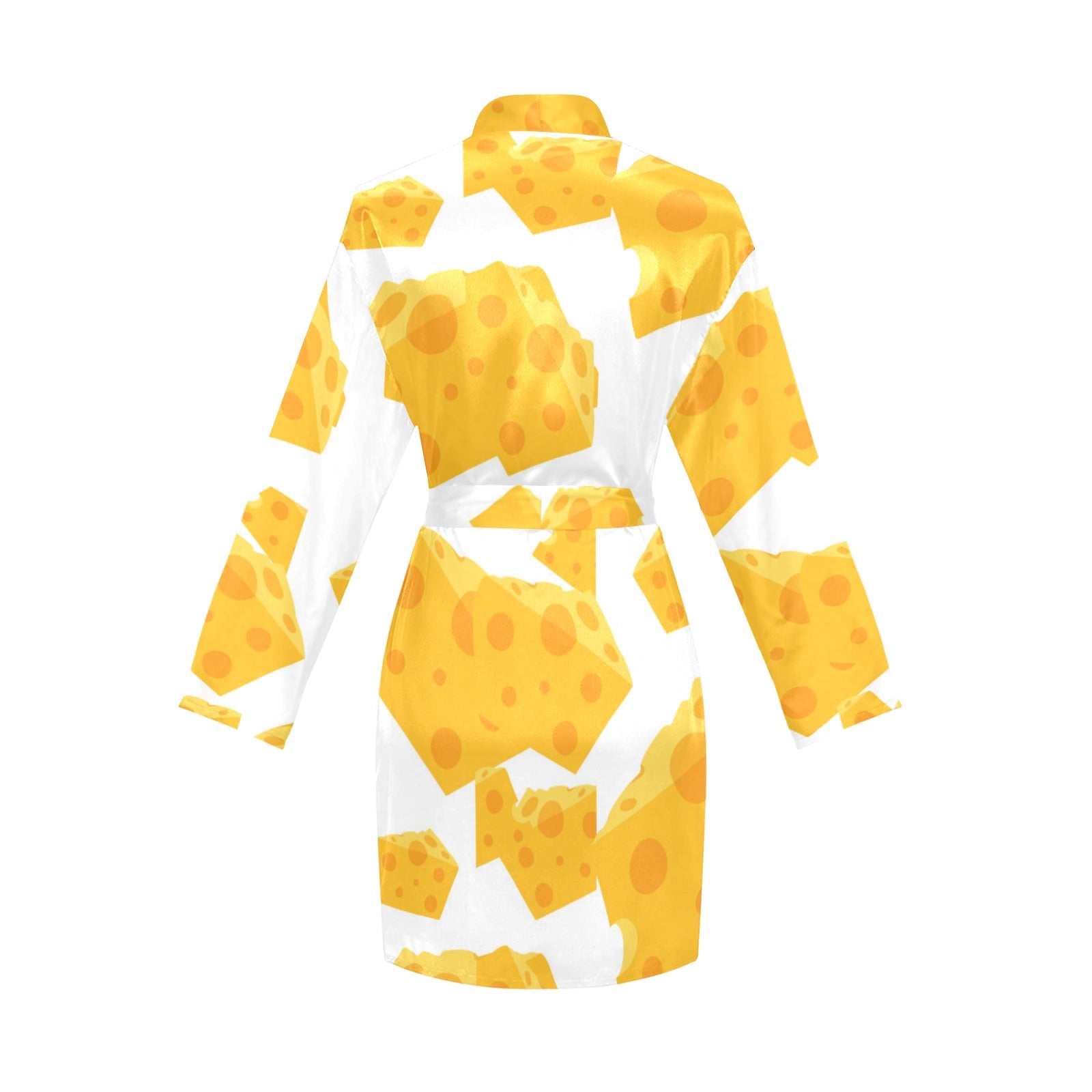 Cheese slice pattern Women's Long Sleeve Belted Night Robe