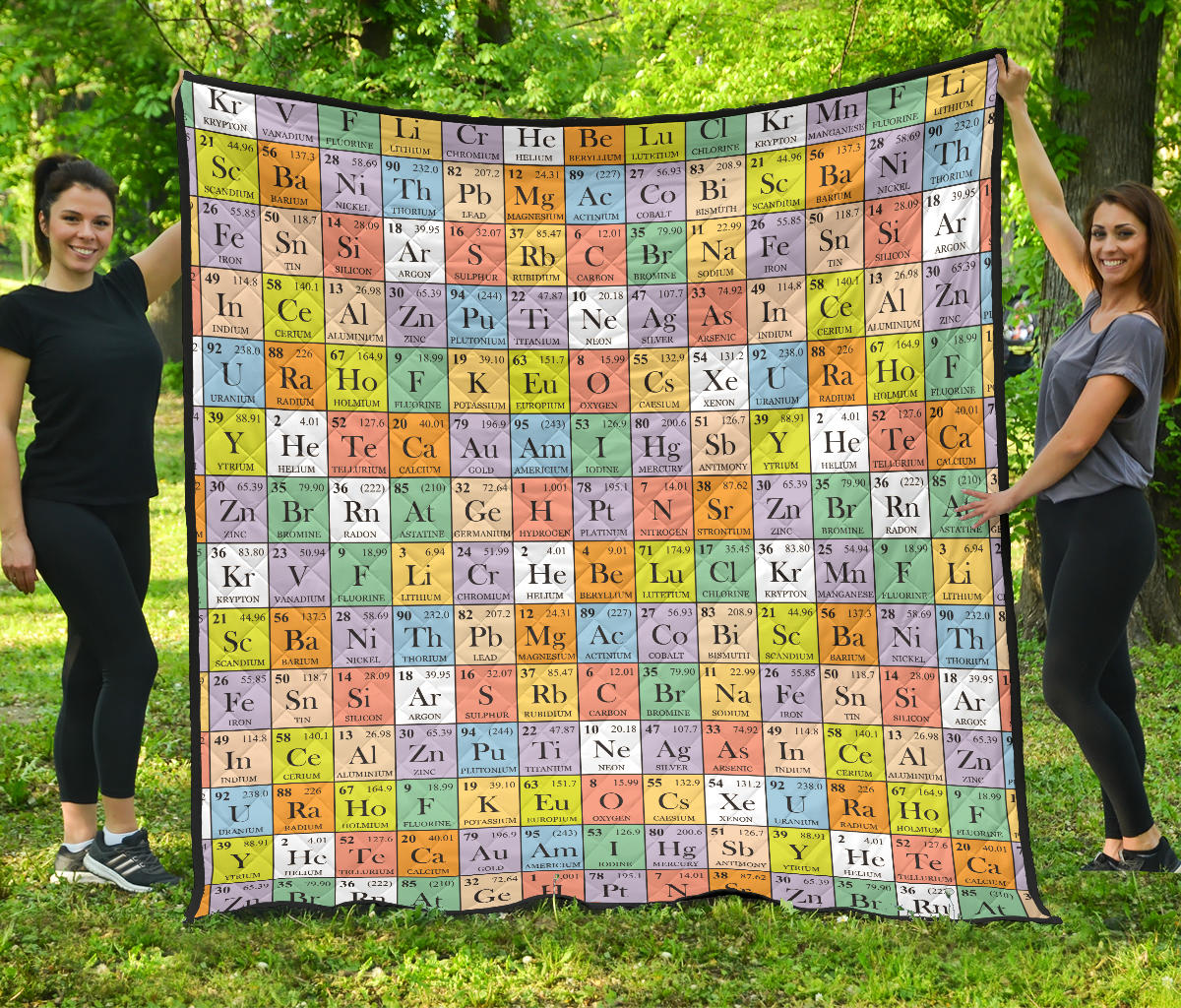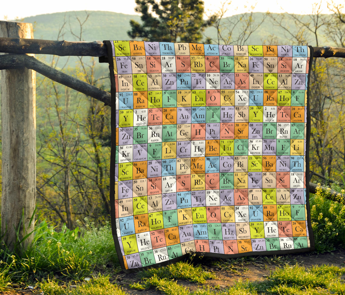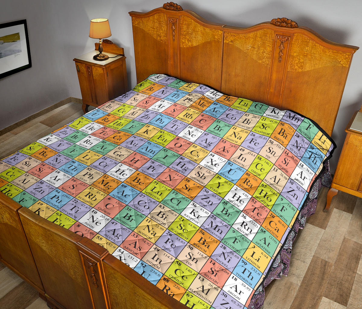 Chemistry Periodic Table Pattern Print Design 01 Premium Quilt is a uniqued design and limited item. It made to order, hand printed, and sewn with love in our factory.