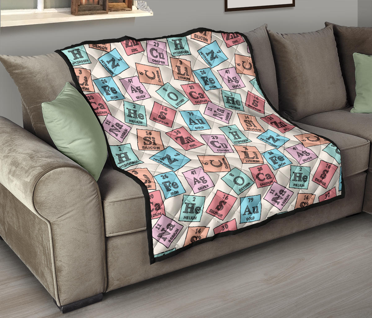 Chemistry Periodic Table Pattern Print Design 02 Premium Quilt is a uniqued design and limited item. It made to order, hand printed, and sewn with love in our factory.