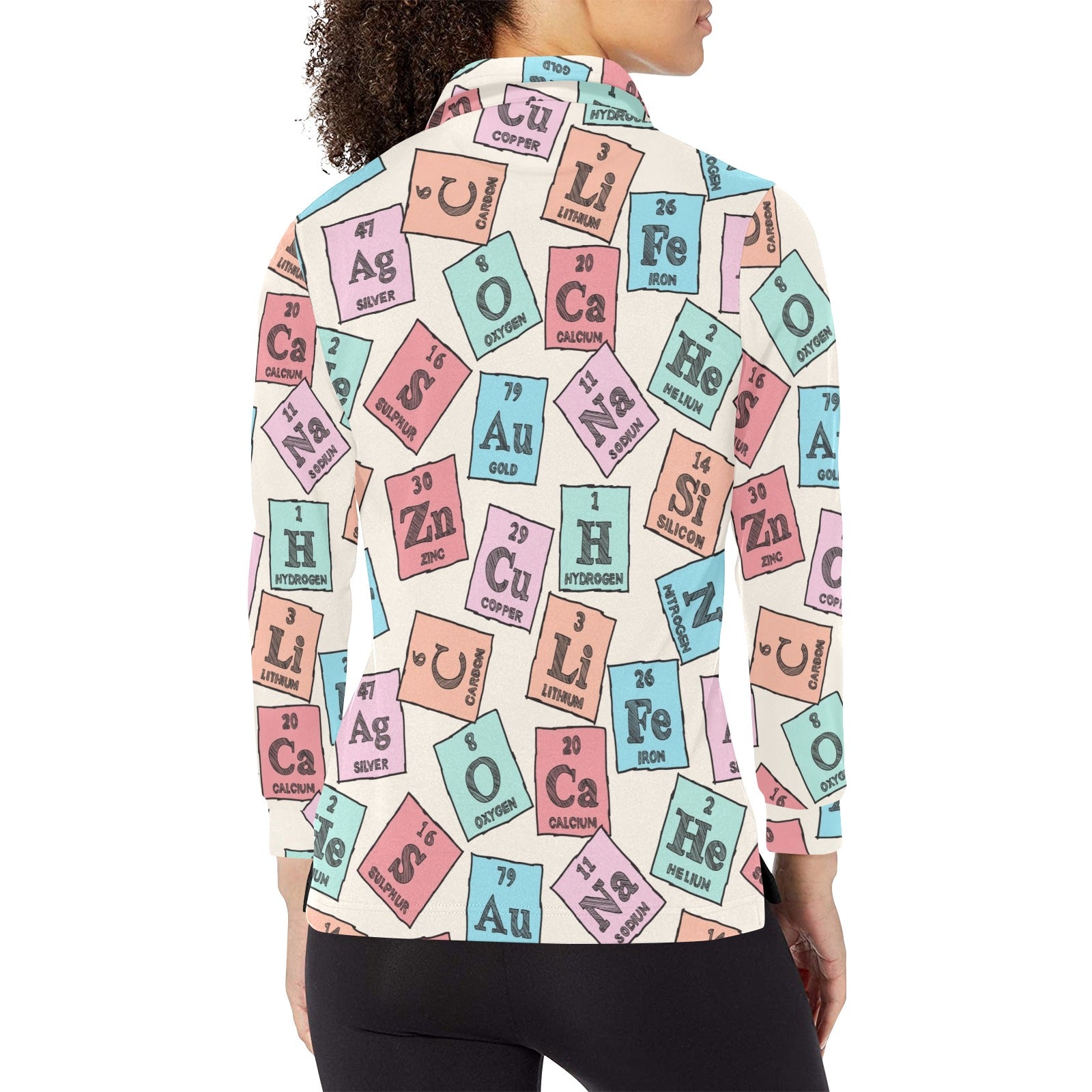 Chemistry Periodic Table Pattern Print Design 02 Women's Long Sleeve Polo Shirt