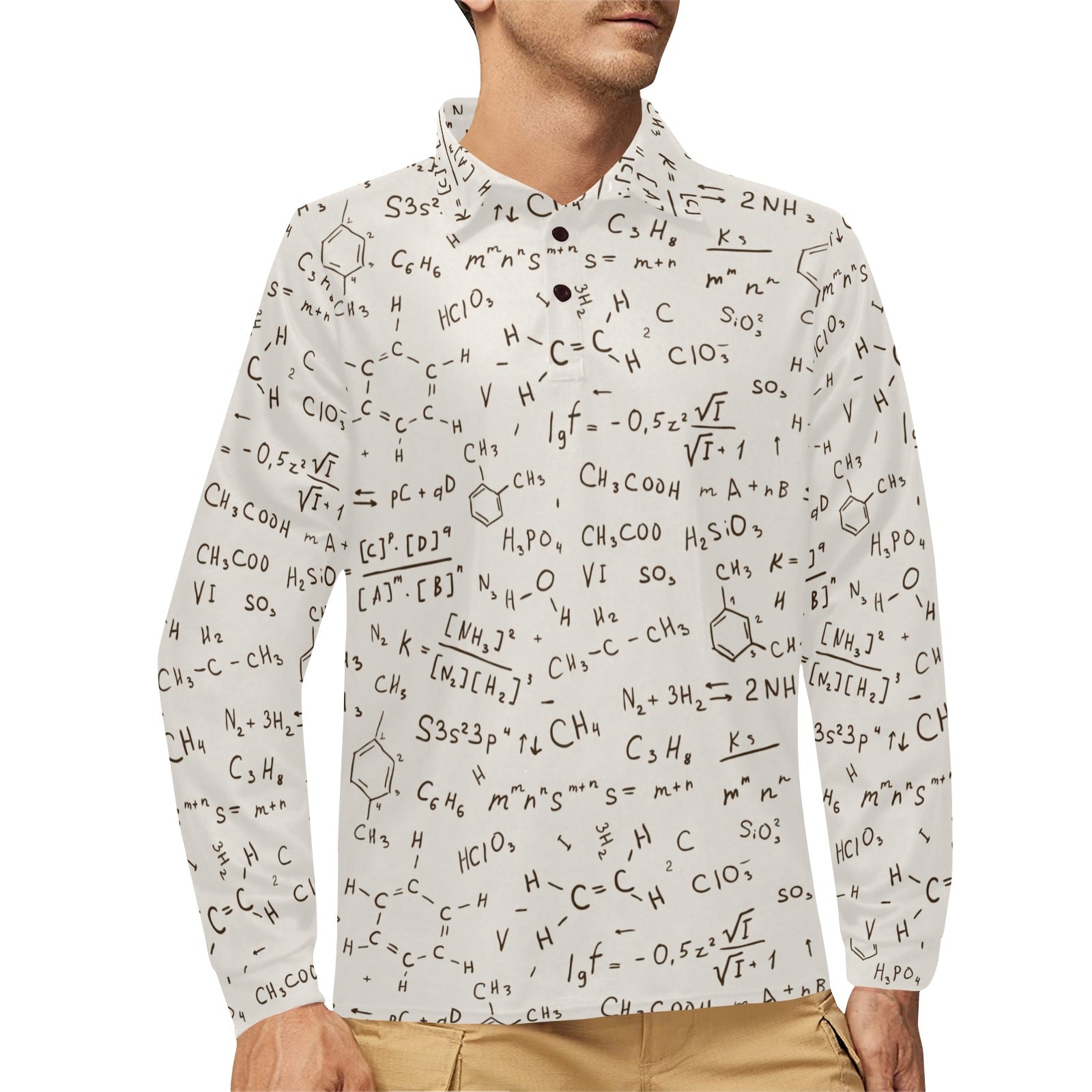 Chemistry Periodic Table Pattern Print Design 04 Men's Long Sleeve Polo Shirt