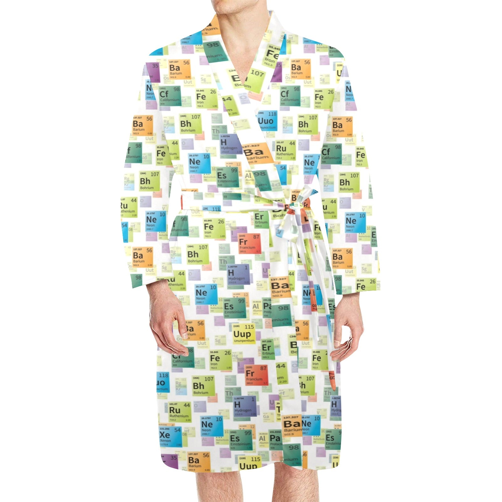 Chemistry Periodic Table Pattern Print Design 05 Men's Long Sleeve Belted Night Robe