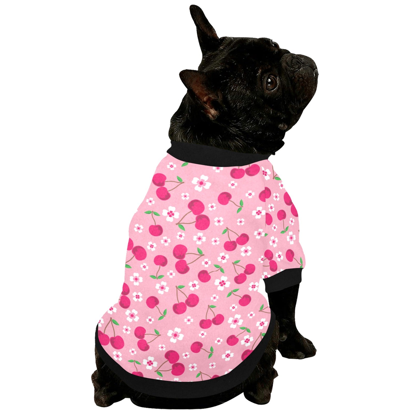 cherry flower pattern pink background All Over Print Pet Dog Round Neck Fuzzy Shirt