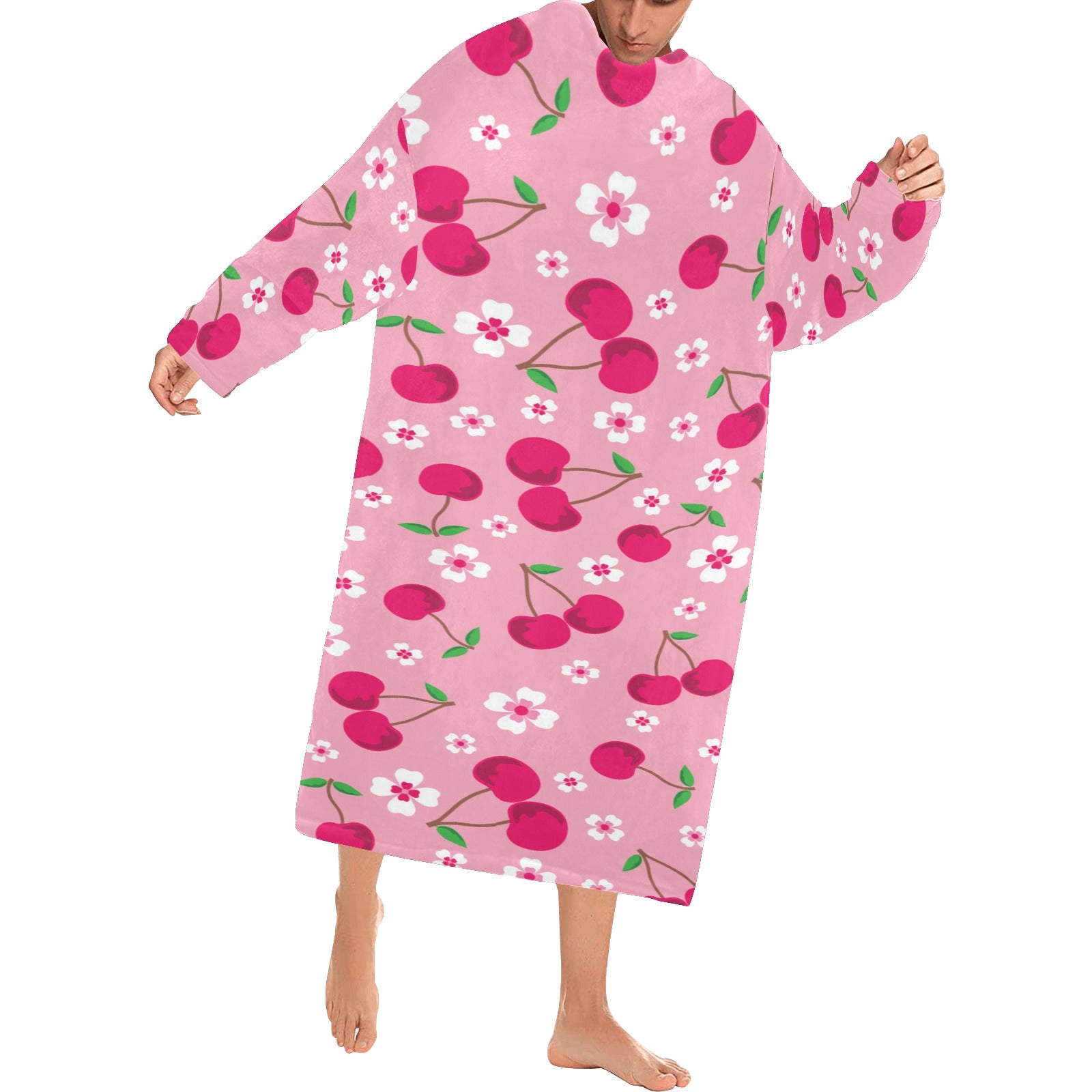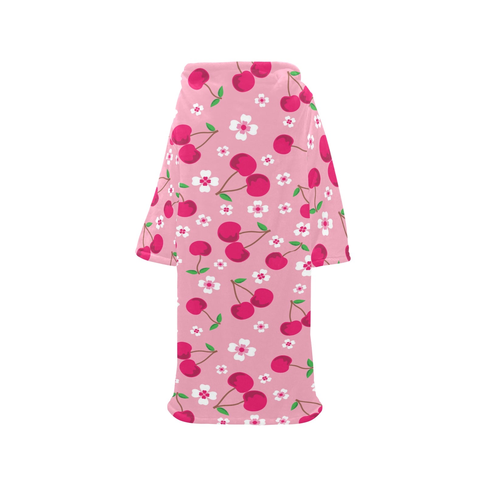 cherry flower pattern pink background Blanket Robe with Sleeves