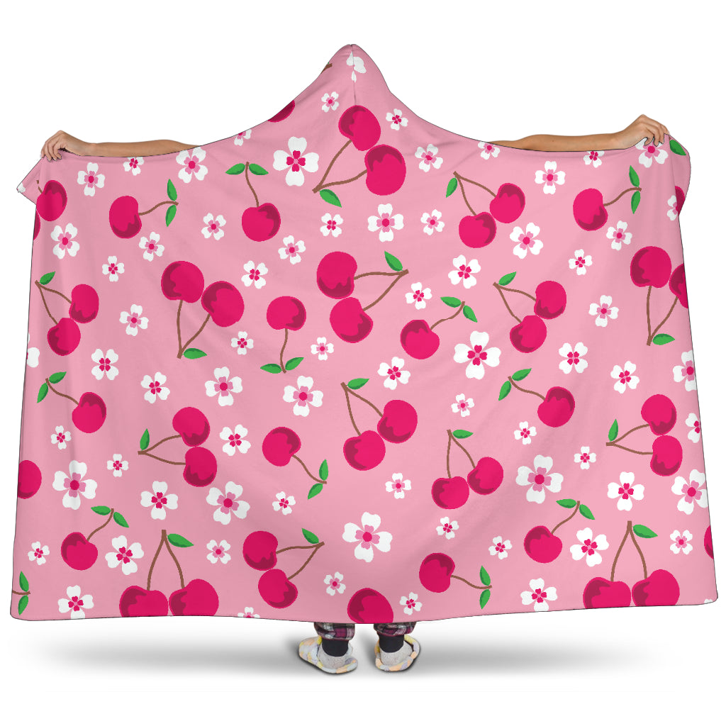 cherry flower pattern pink background Hooded Blanket are custom-made-to-order and handcrafted to the highest quality standards.