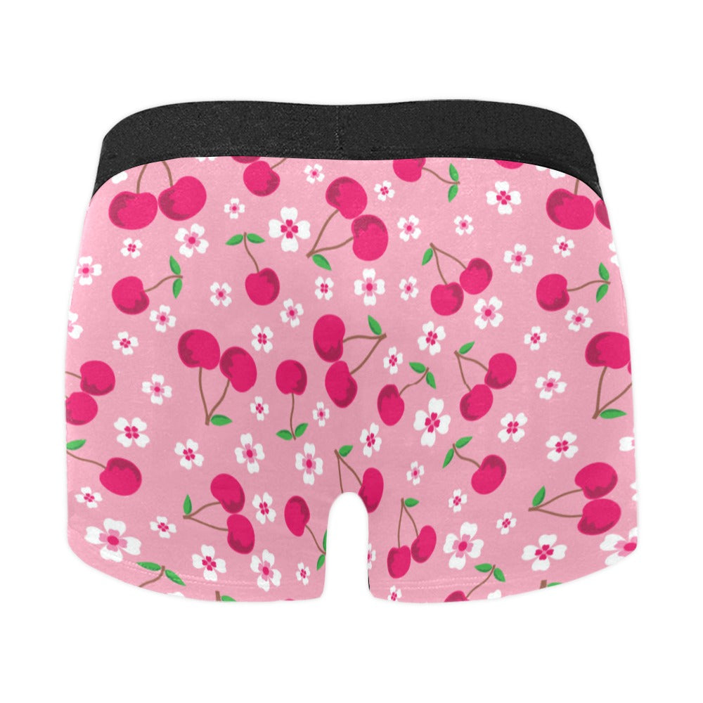 cherry flower pattern pink background Men's All Over Print Boxer Briefs Men's Underwear