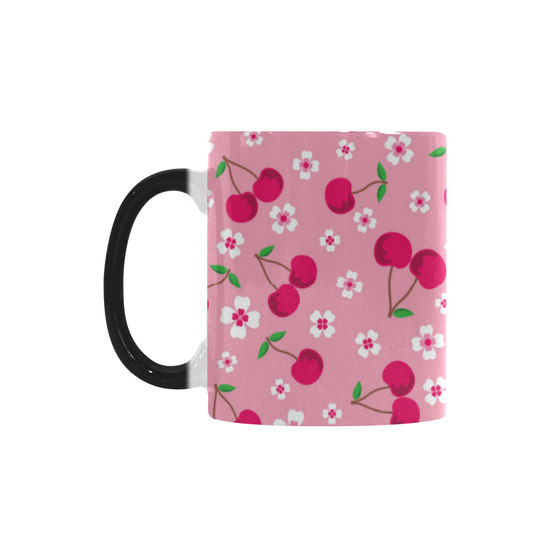 cherry flower pattern pink background Morphing Mug Heat Changing Mug is a uniqued design and limited item. It made to order, hand printed, and sewn with love in our factory.