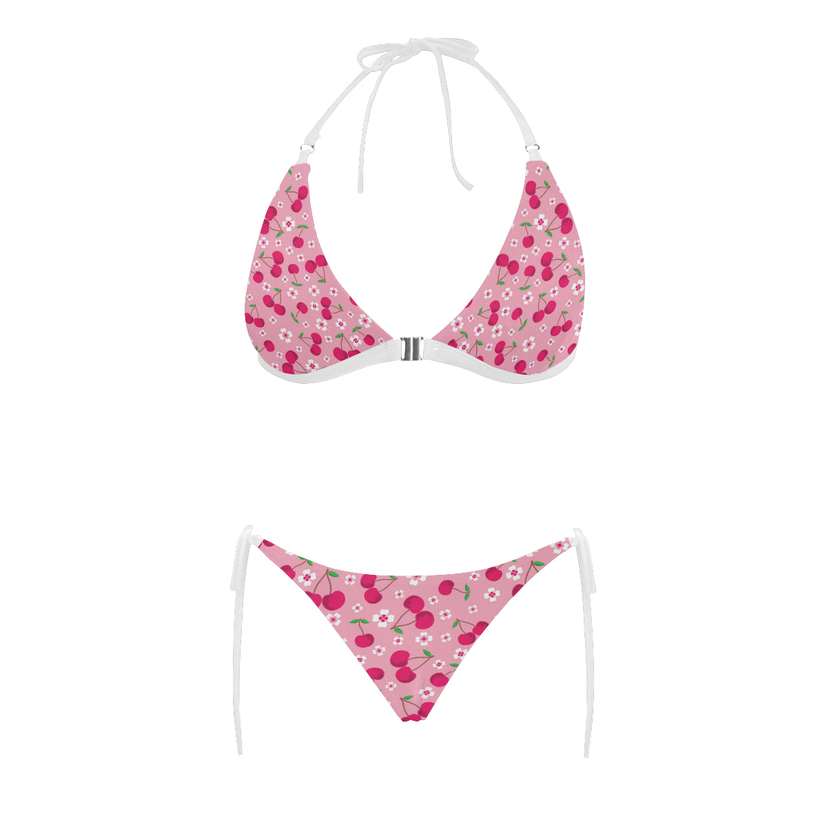 cherry flower pattern pink background Sexy Bikinis Two-Piece Swimsuits are uniqued design and limited item. It made to order, hand printed, and sewn with love in our factory.