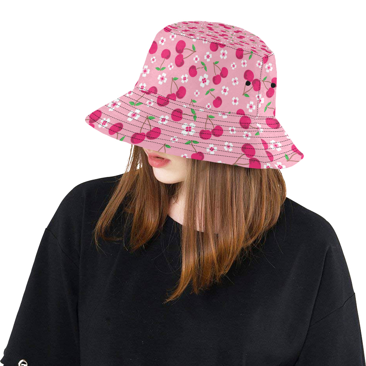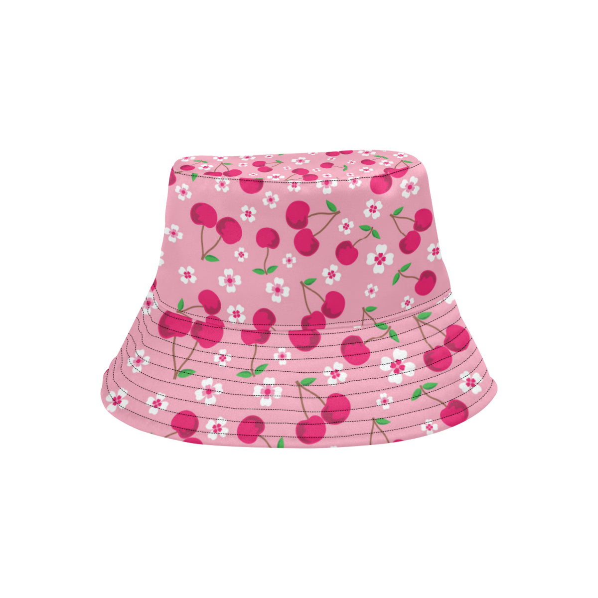 cherry flower pattern pink background Unisex Bucket Hat is a uniqued design and limited item. It made to order, hand printed, and sewn with love in our factory.
