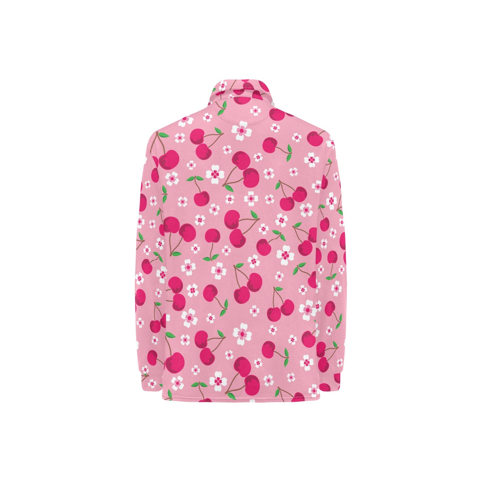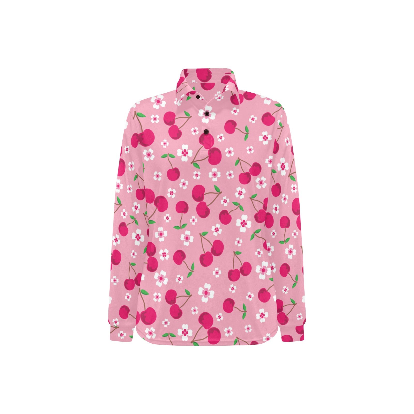 cherry flower pattern pink background Women's Long Sleeve Polo Shirt