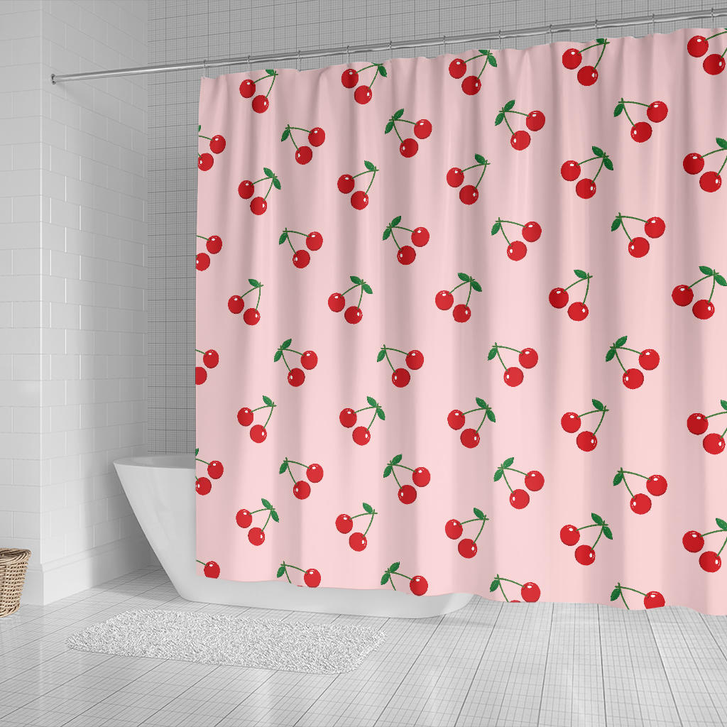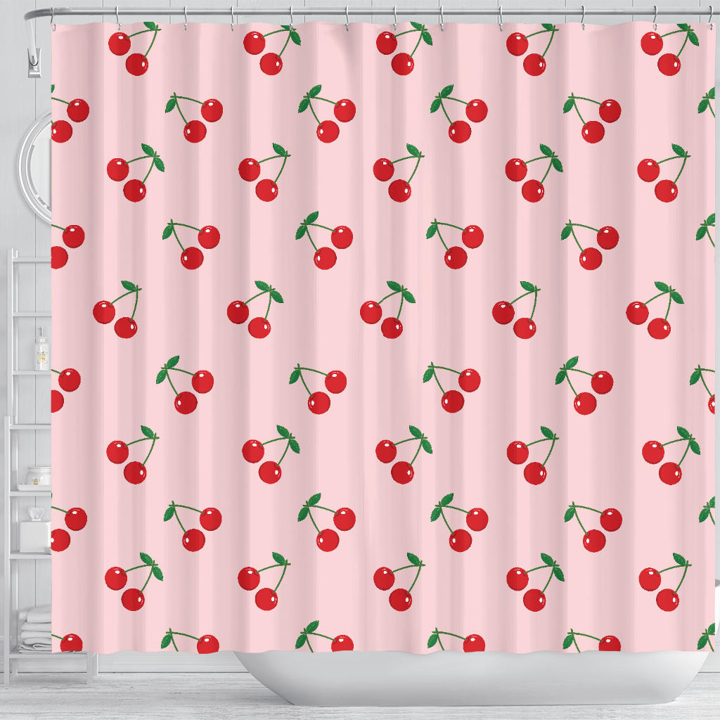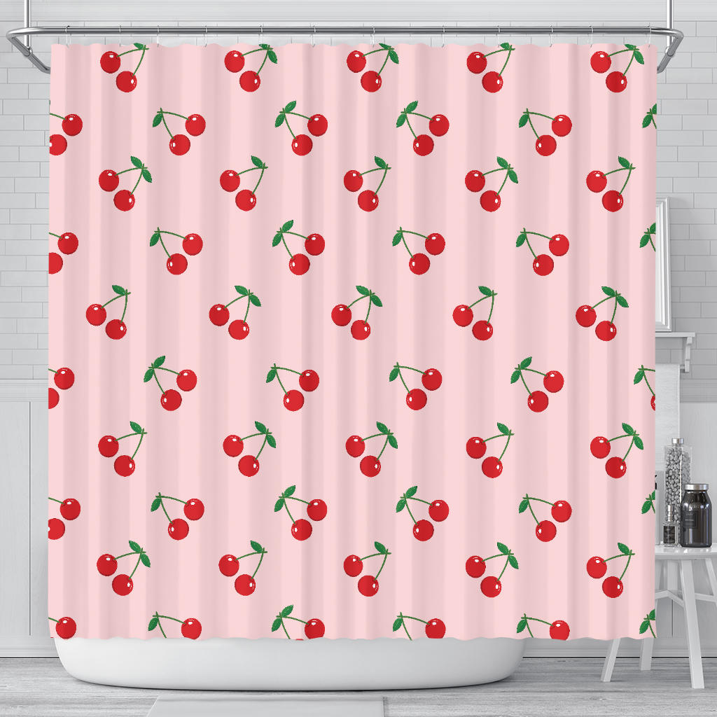 Cherry Pattern Pink Background Shower Curtain Fulfilled In US