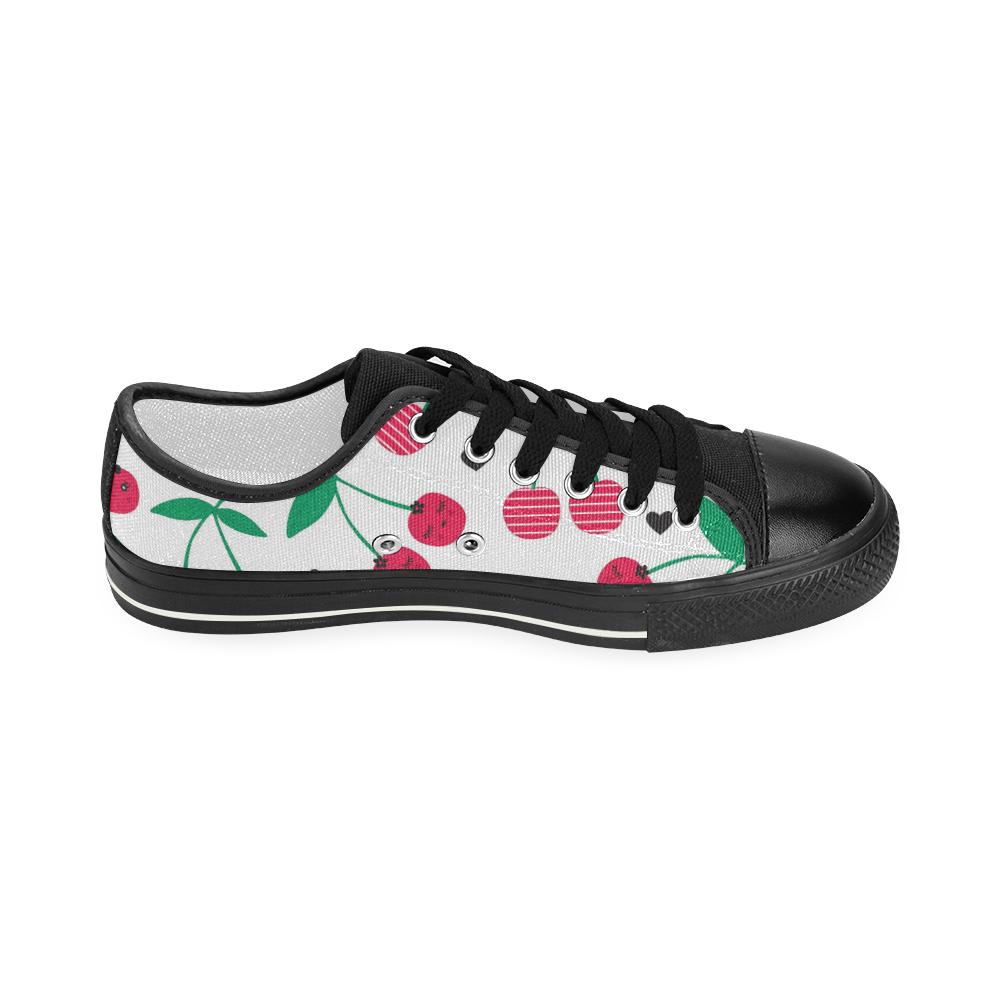 cherry pattern white background Kids' Boys' Girls' Low Top Canvas Shoes Black