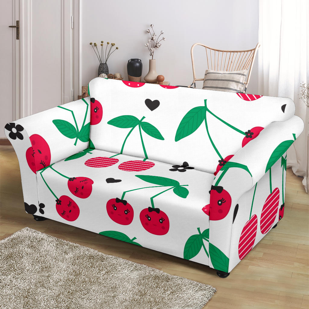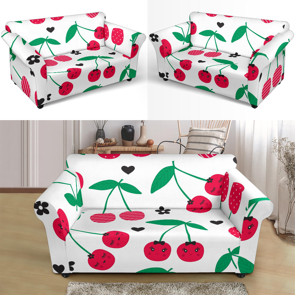 Cherry Pattern White Background Loveseat Couch Slipcover