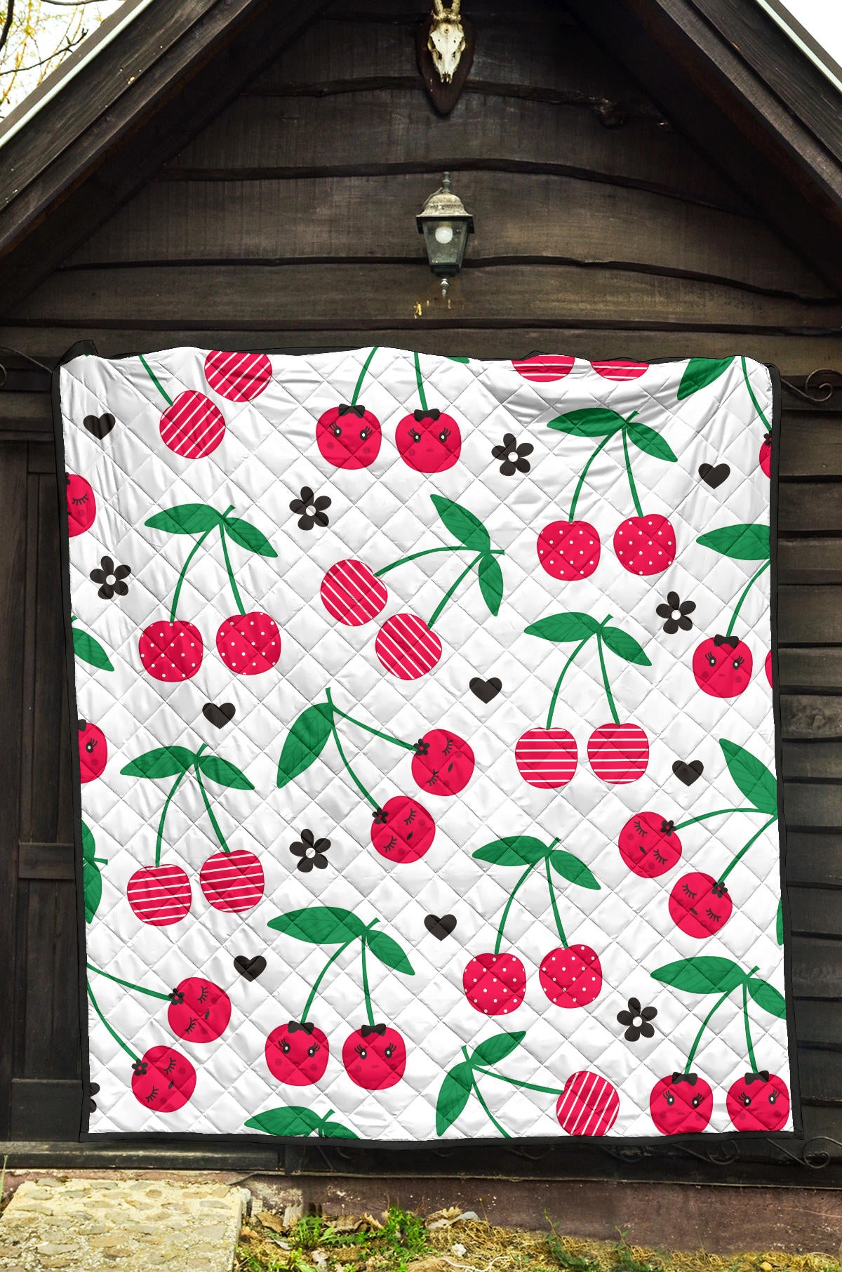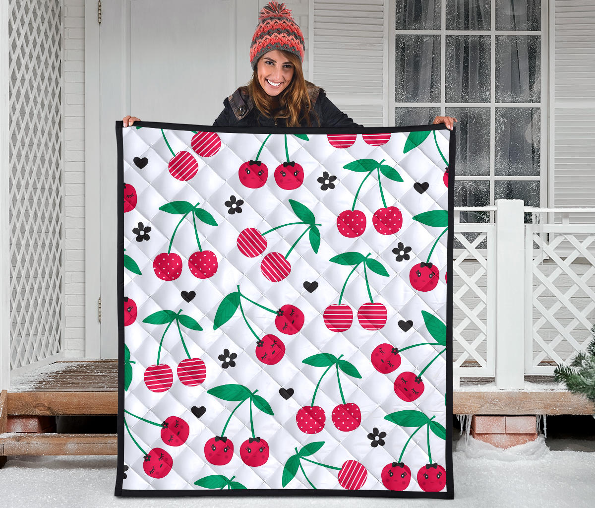 Cherry Pattern White Background Premium Quilt is a uniqued design and limited item. It made to order, hand printed, and sewn with love in our factory.