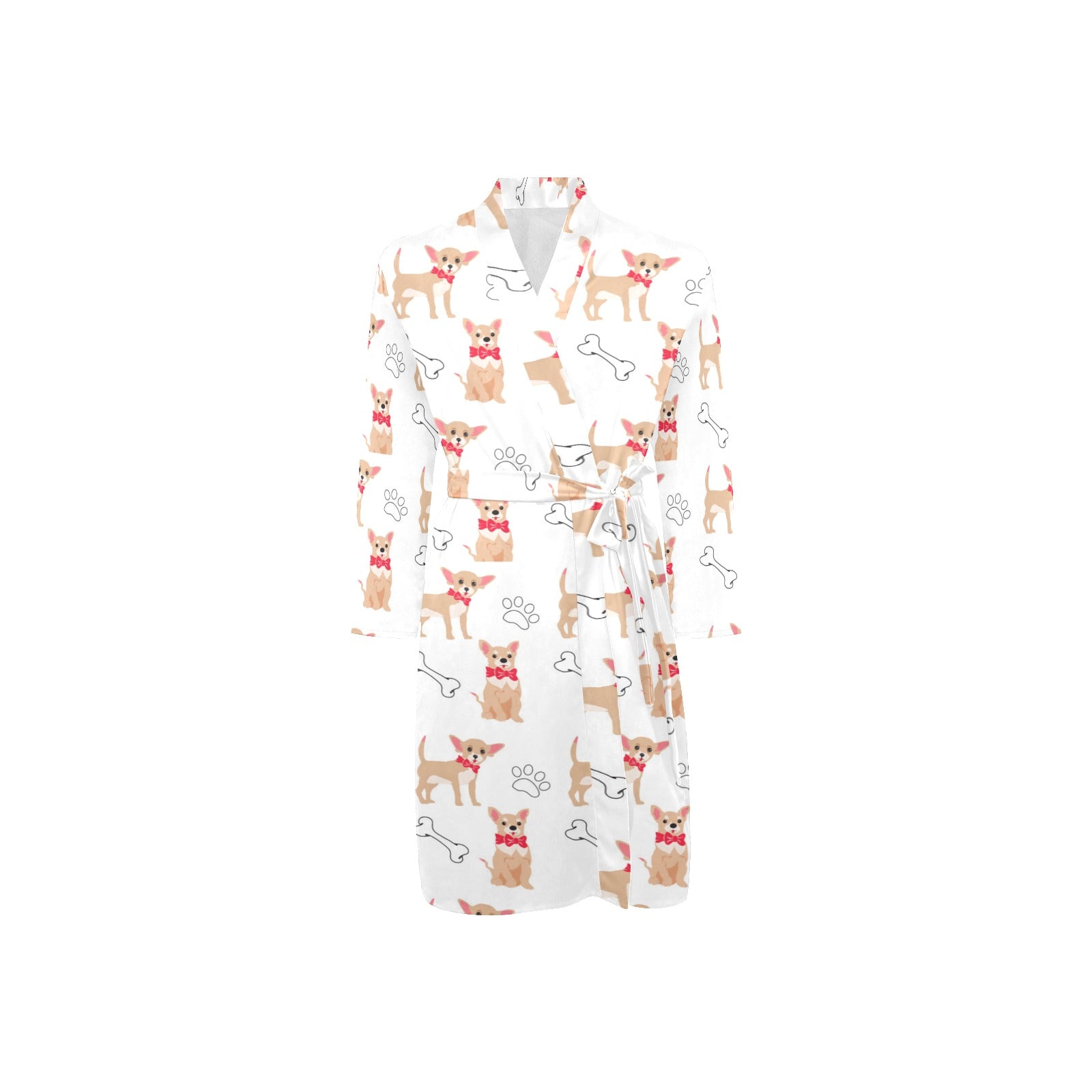 Chihuahua bone paw pattern Men's Long Sleeve Belted Night Robe