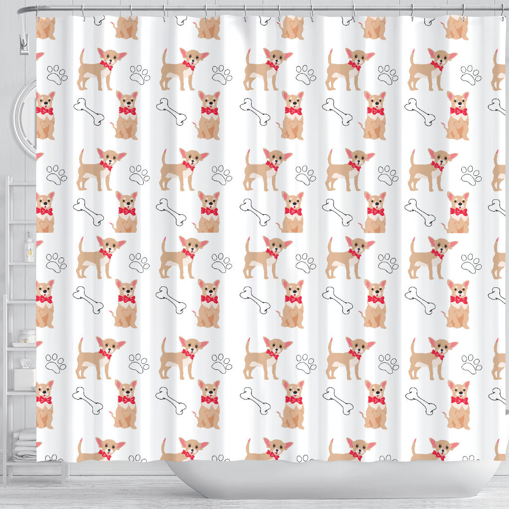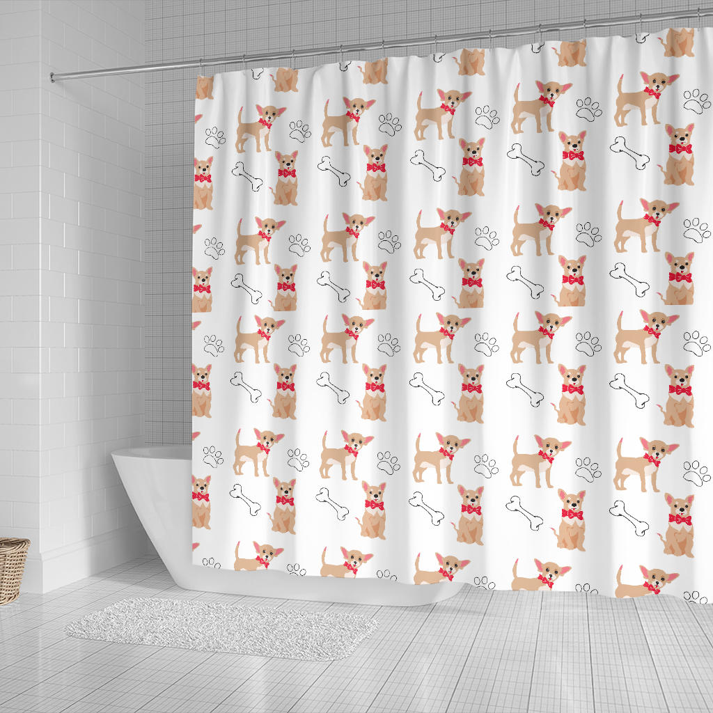 Chihuahua Bone Paw Pattern Shower Curtain Fulfilled In US
