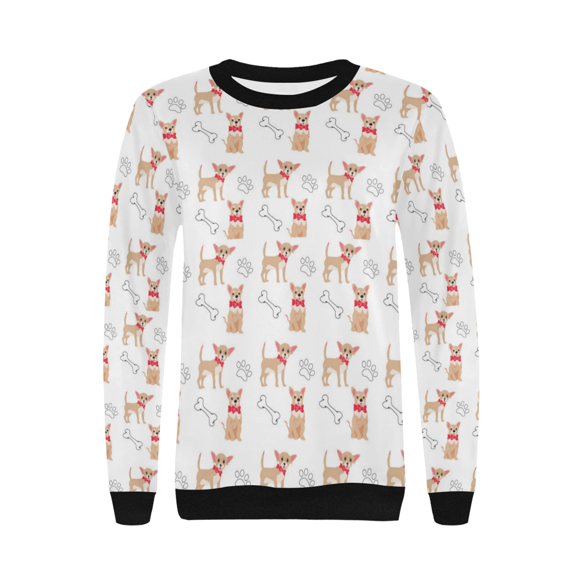 Chihuahua bone paw pattern Women's Crew Neck Sweatshirt is a uniqued design and limited item. It made to order, hand printed, and sewn with love in our factory.