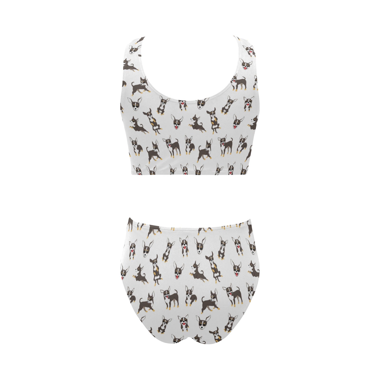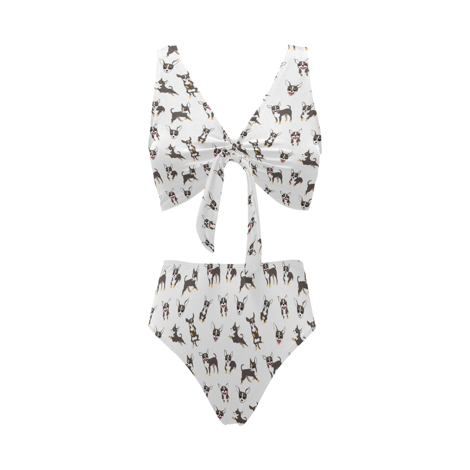 Chihuahua dog pattern Chest Bowknot High Waisted Bikini Swimsuit