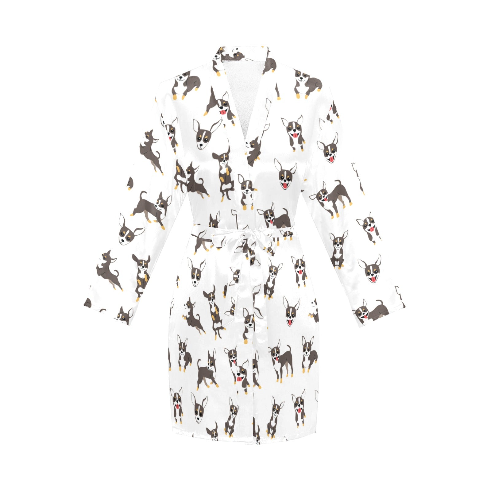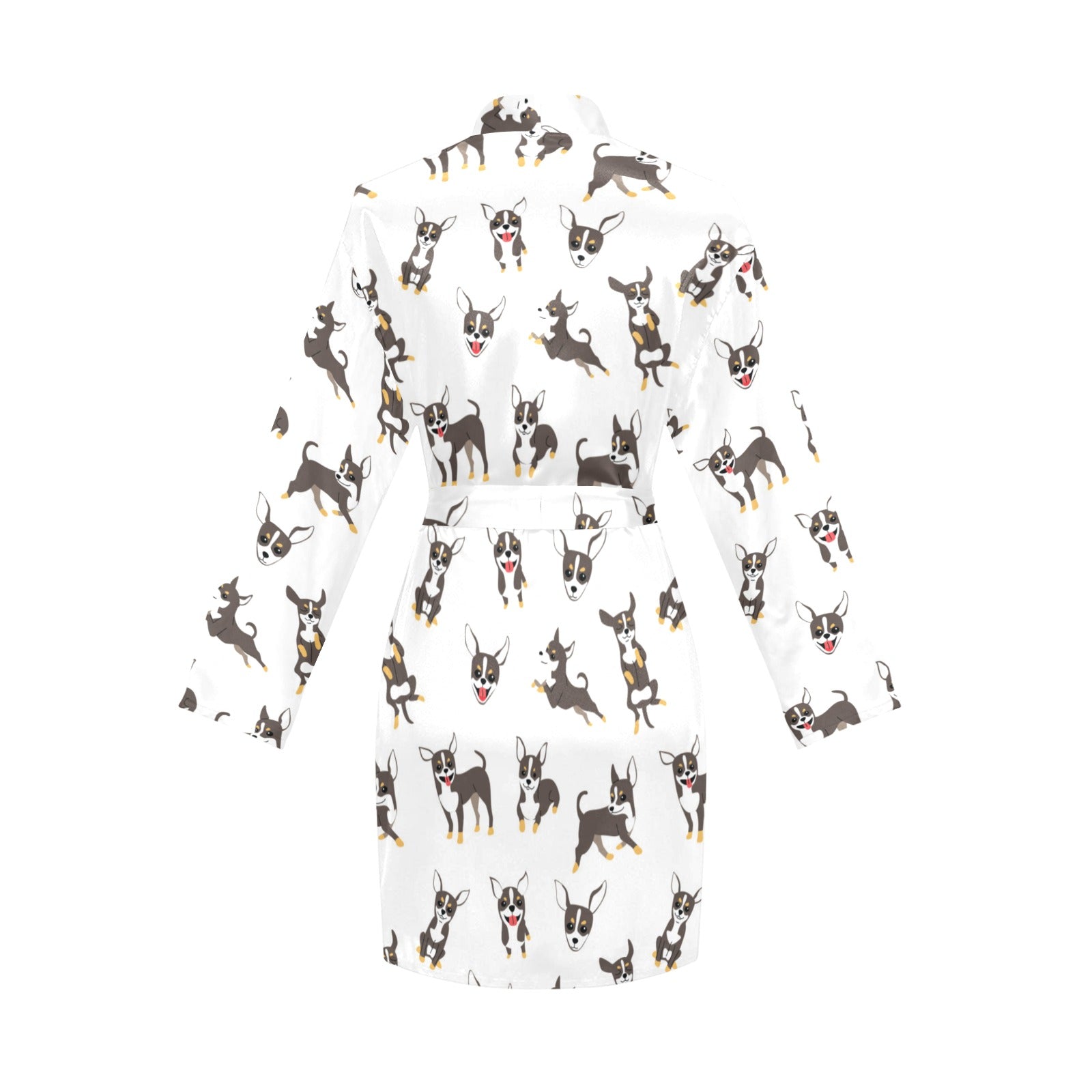 Chihuahua dog pattern Women's Long Sleeve Belted Night Robe