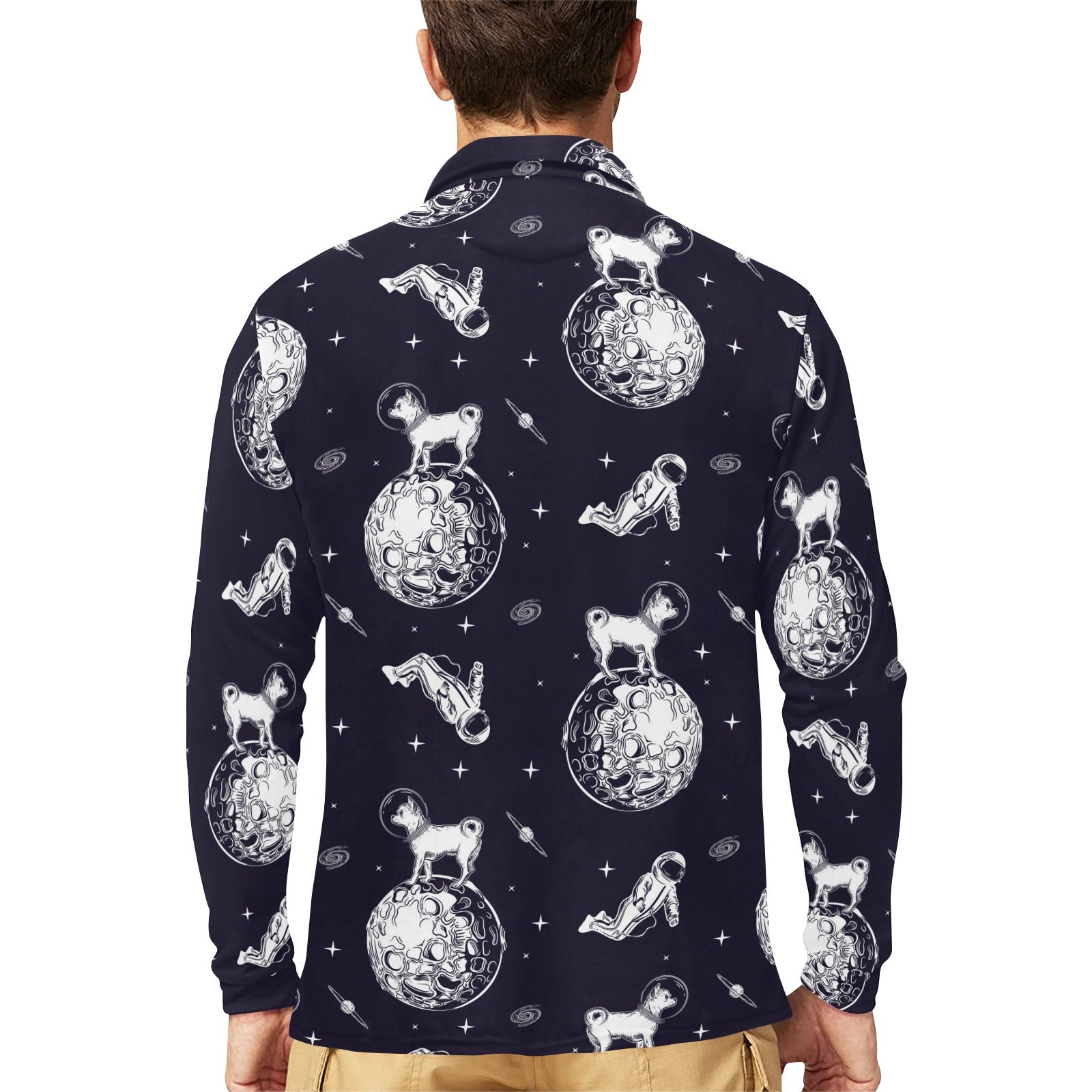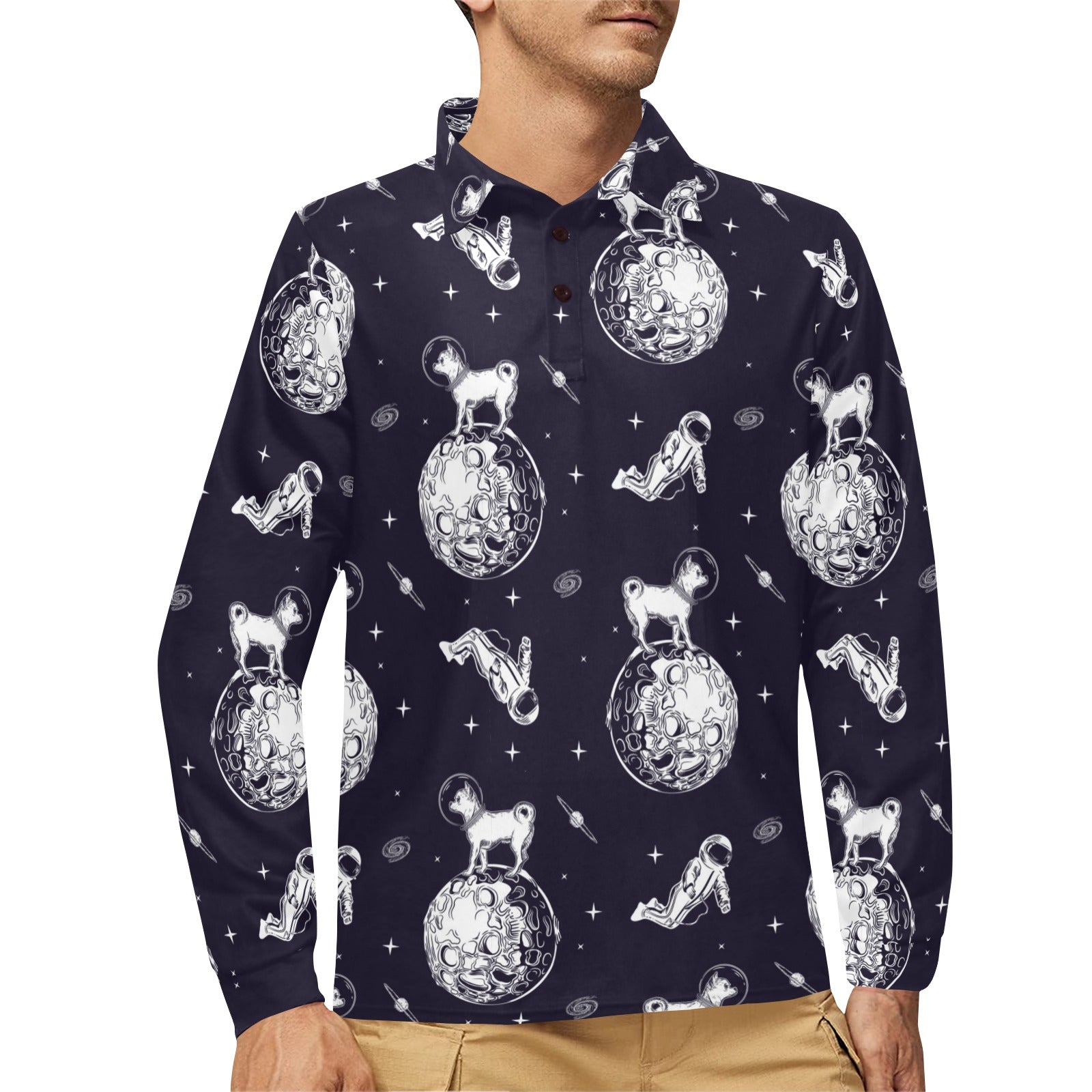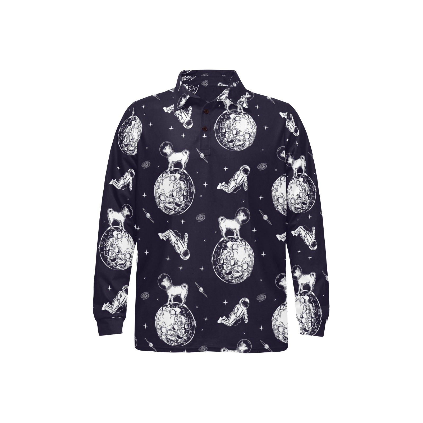 Chihuahua space helmet. astronaut pattern Men's Long Sleeve Polo Shirt