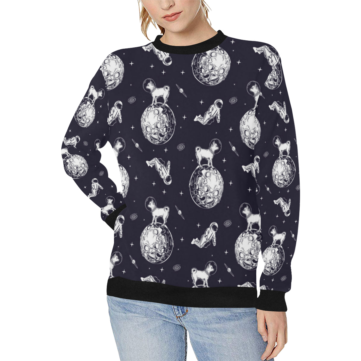 Chihuahua space helmet. astronaut pattern Women's Crew Neck Sweatshirt is a uniqued design and limited item. It made to order, hand printed, and sewn with love in our factory.