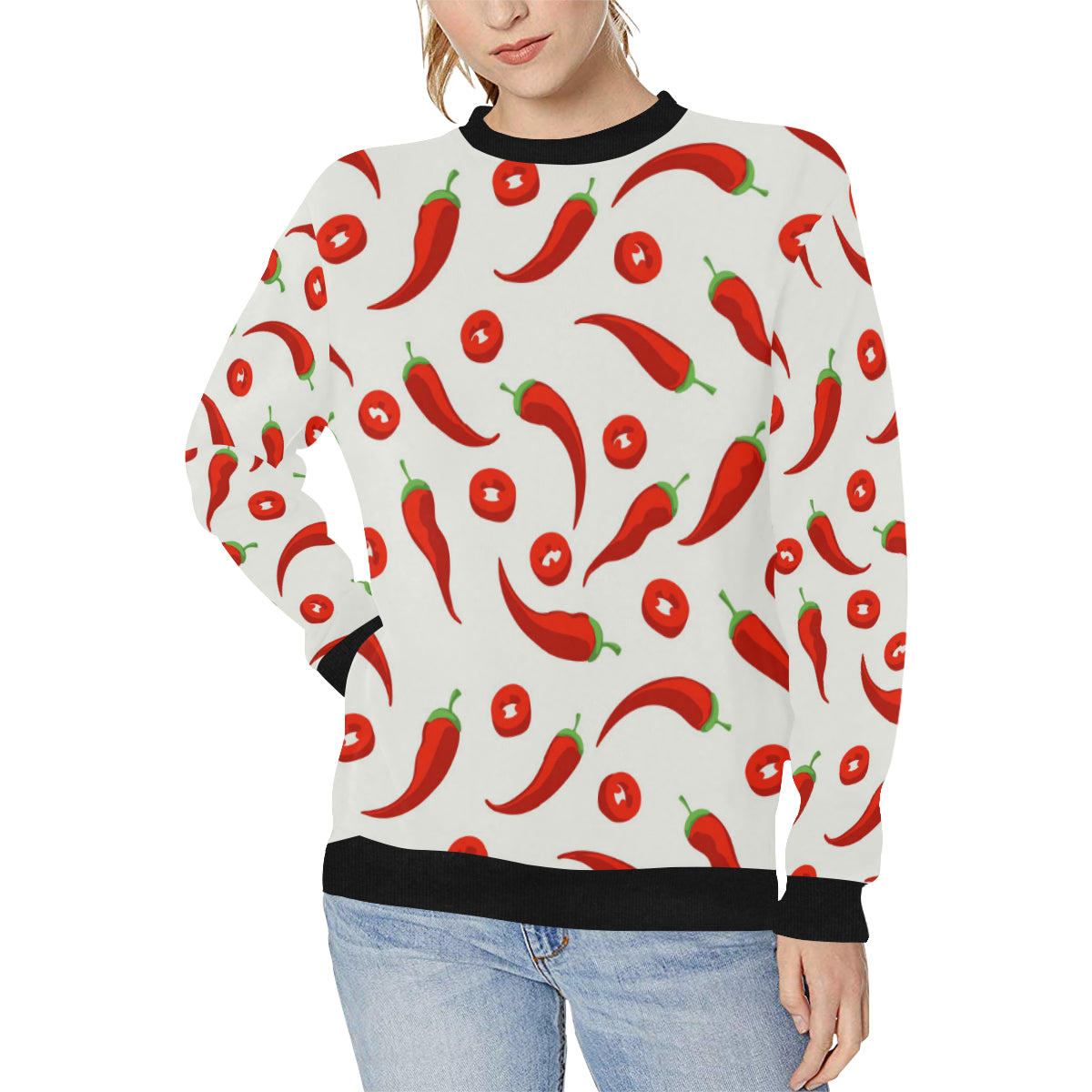 Chili pattern Women's Crew Neck Sweatshirt is a uniqued design and limited item. It made to order, hand printed, and sewn with love in our factory.