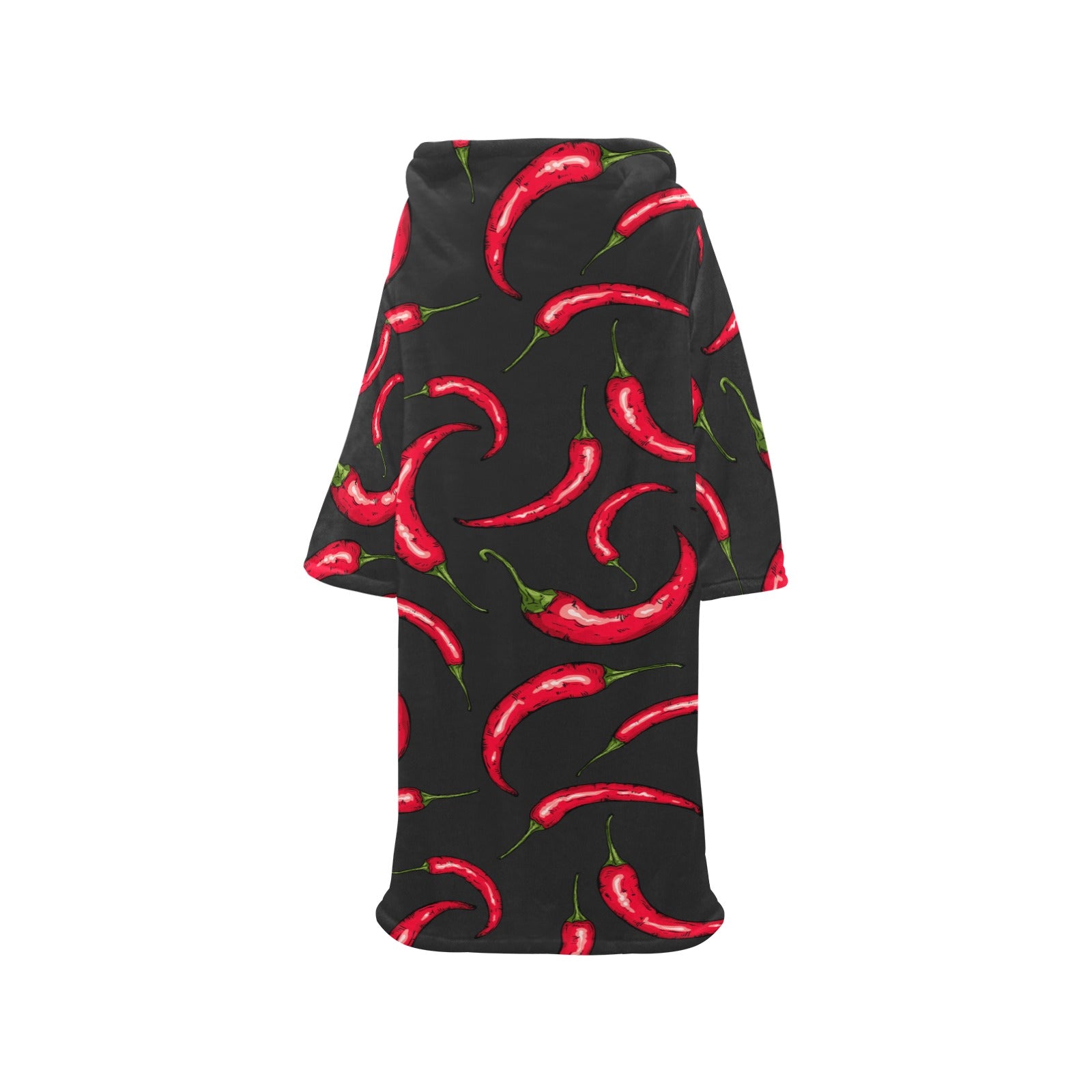 Chili peppers pattern black background Blanket Robe with Sleeves