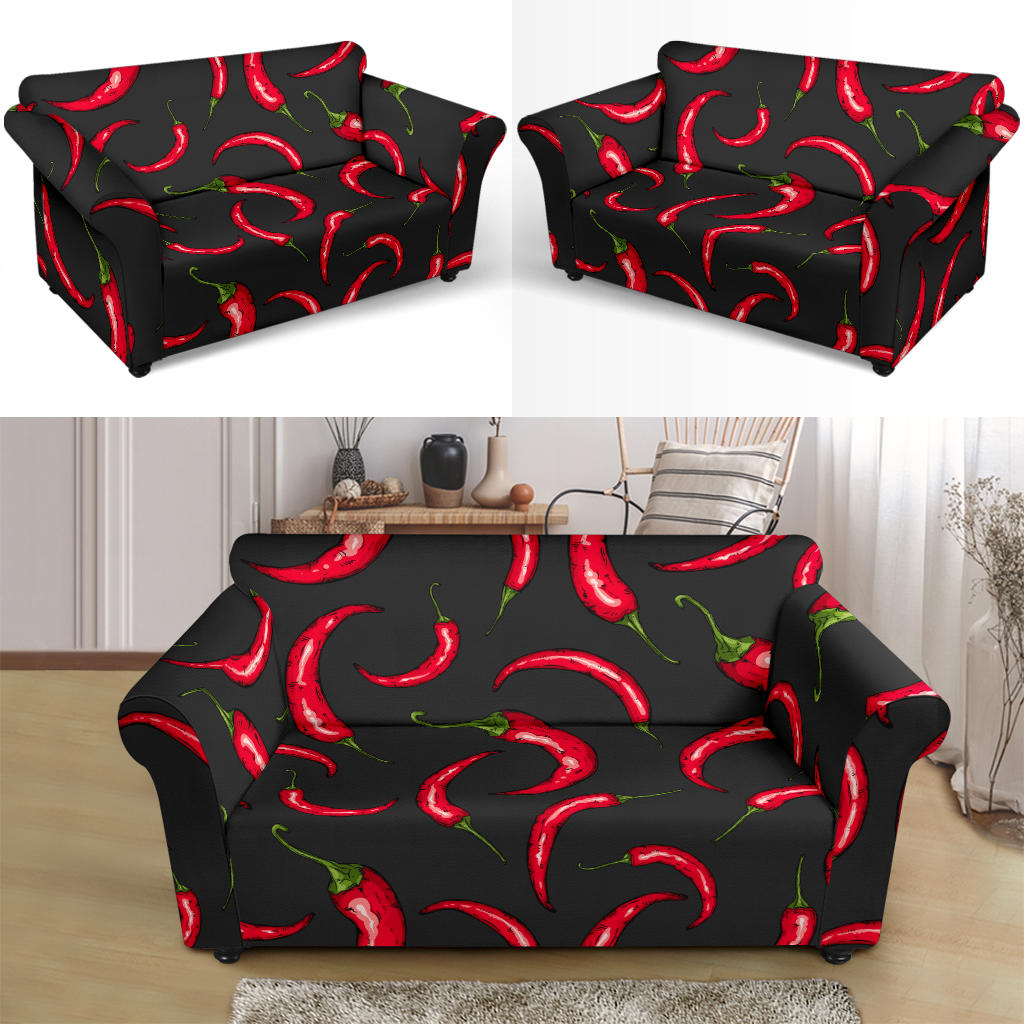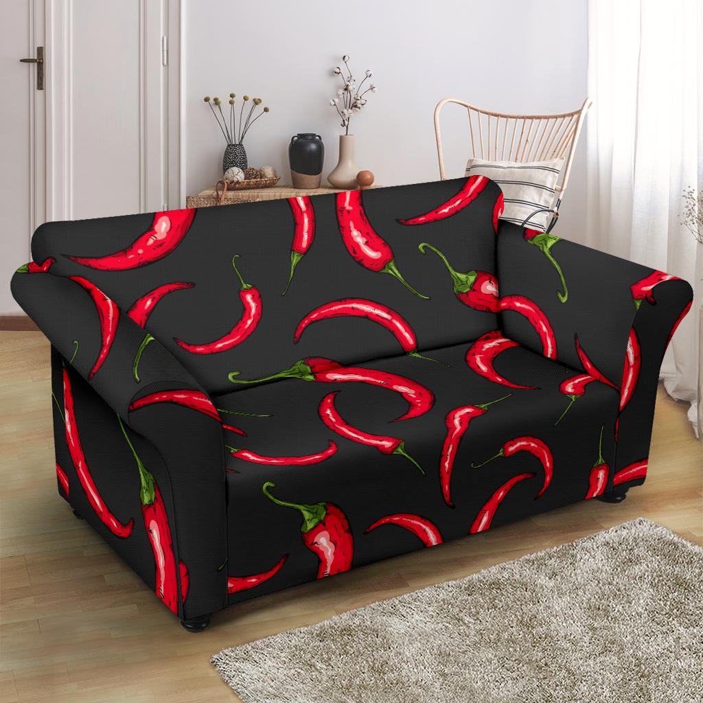Chili Peppers Pattern Black Background Loveseat Couch Slipcover