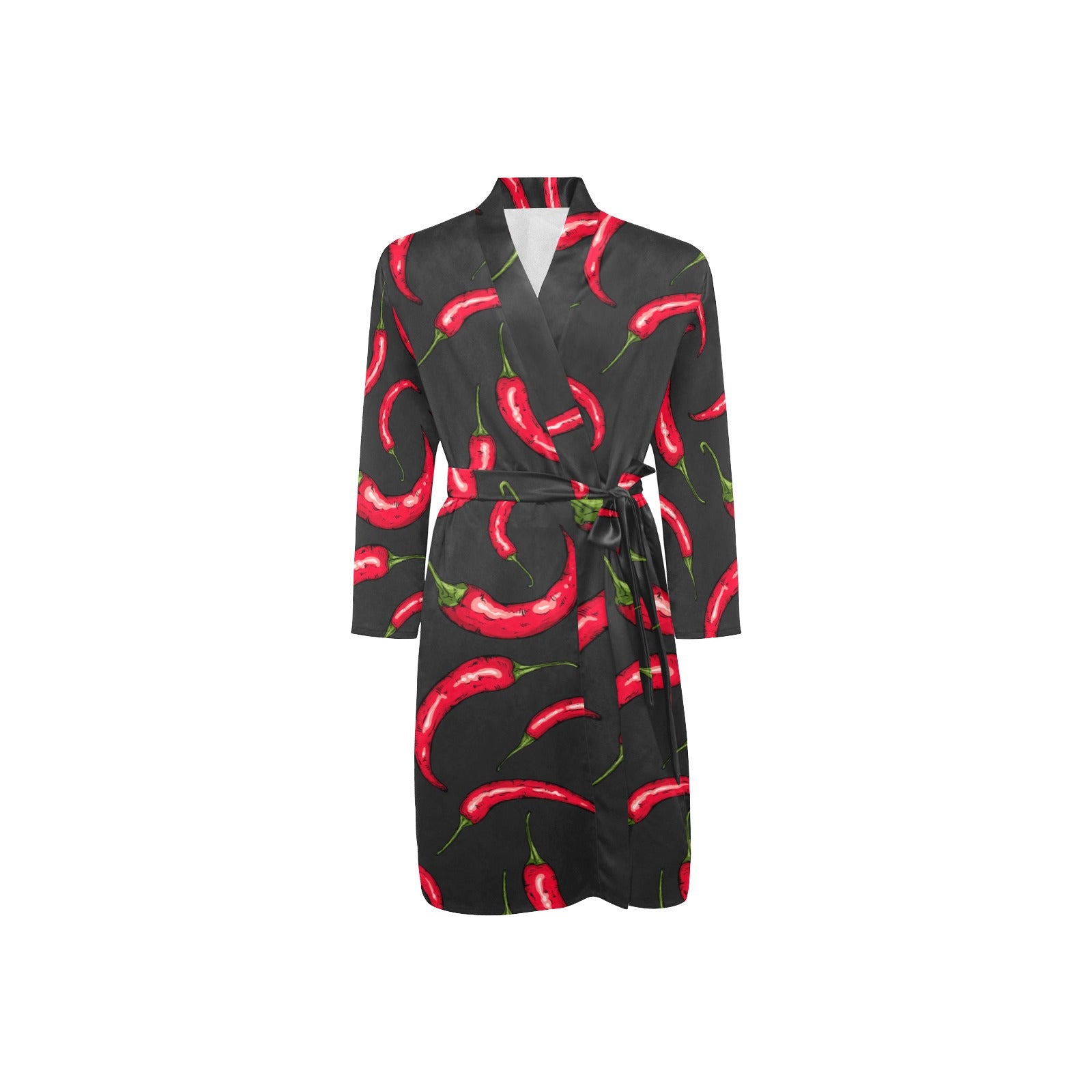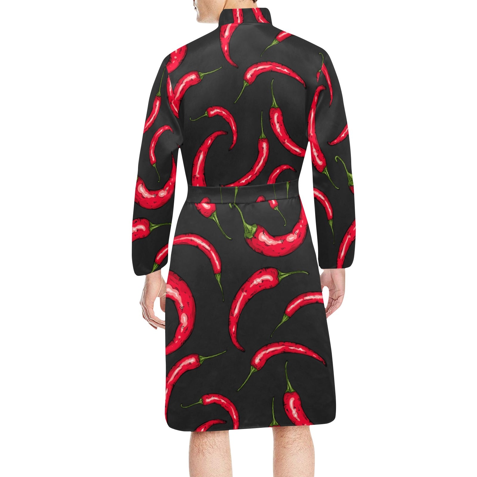 Chili peppers pattern black background Men's Long Sleeve Belted Night Robe