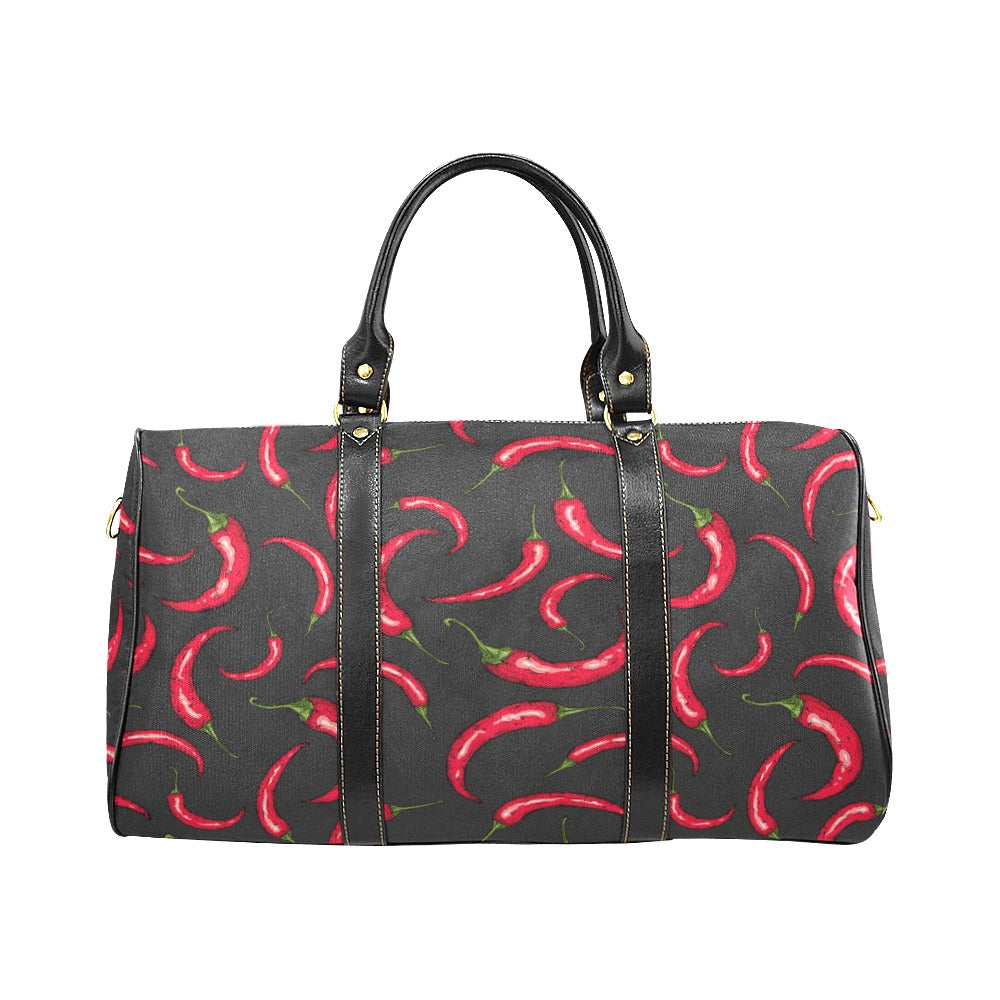 Chili peppers pattern black background Travel Bag