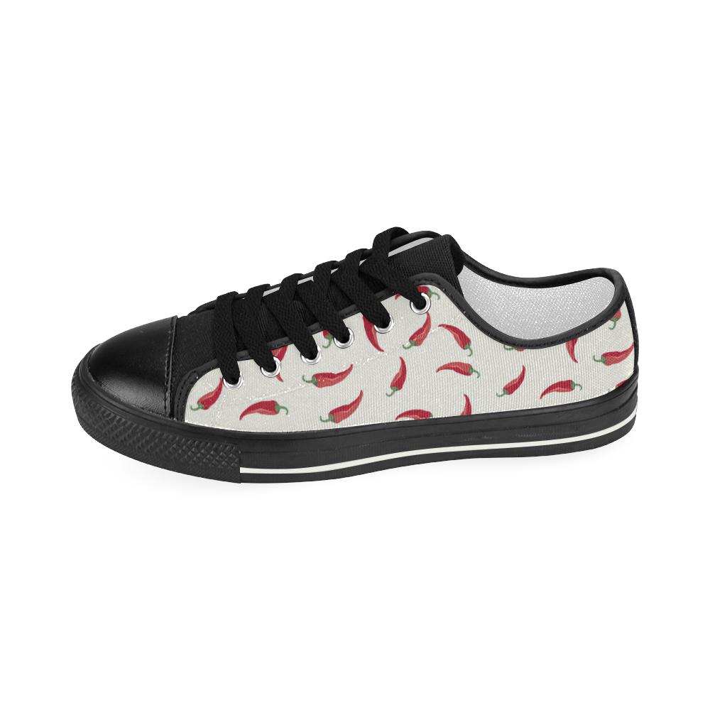 Chili peppers pattern Kids' Boys' Girls' Low Top Canvas Shoes Black