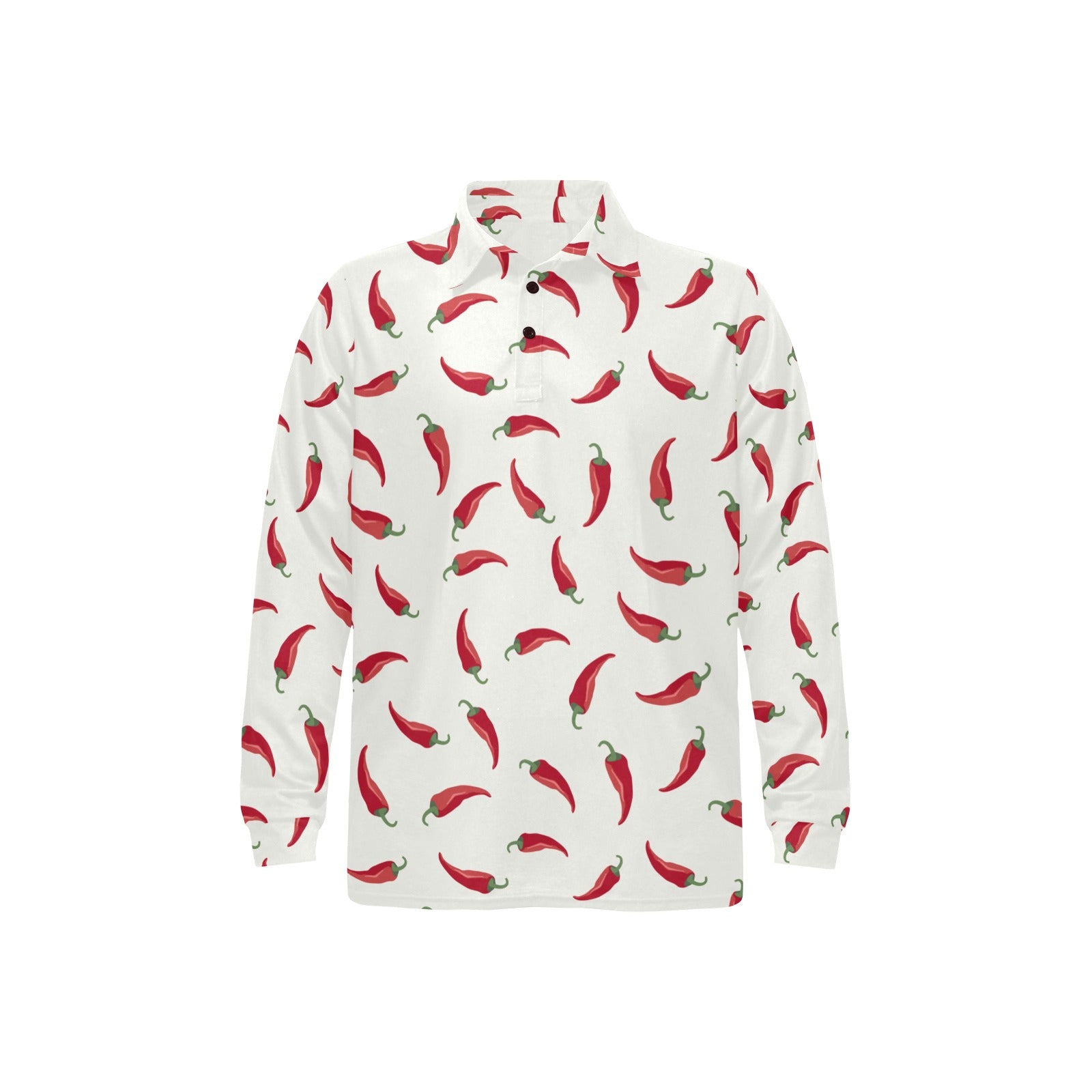 Chili peppers pattern Men's Long Sleeve Polo Shirt