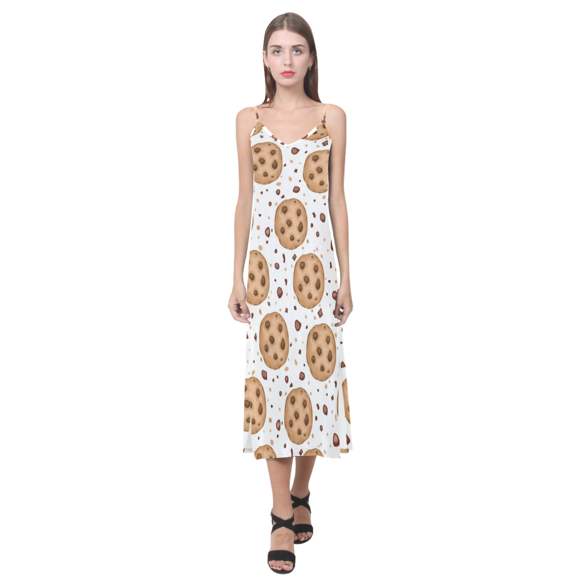 chocolate chip cookie pattern V-Neck Open Fork Long Dress