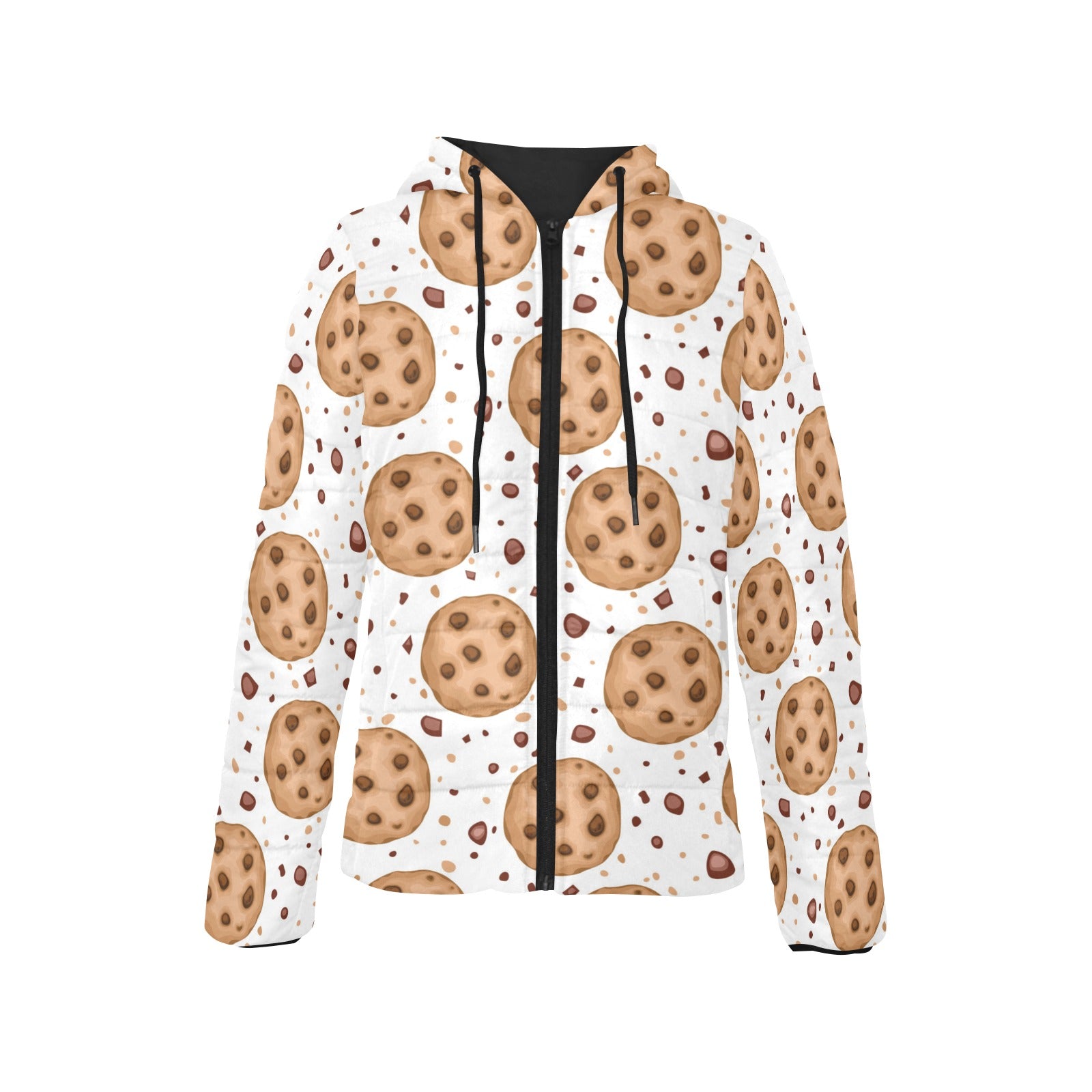 chocolate chip cookie pattern Women's Padded Hooded Jacket