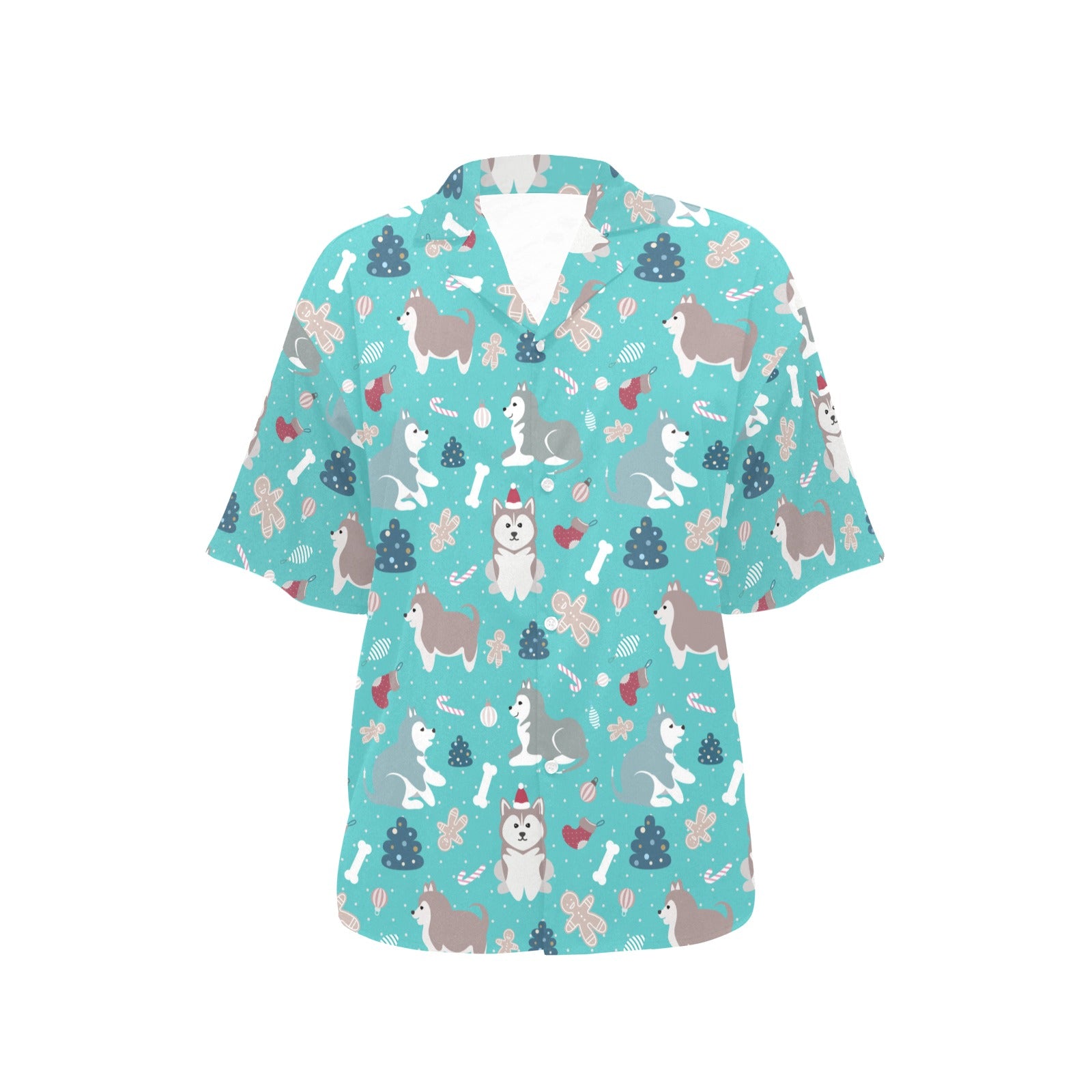 Christmas cute siberian husky puppie pattern Women's All Over Print Hawaiian Shirt