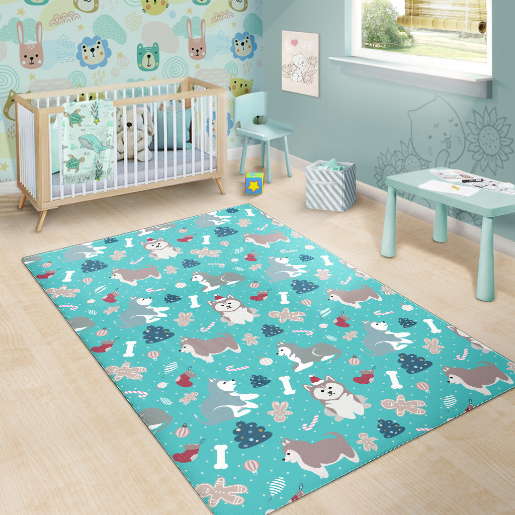 Christmas cute siberian husky puppie pattern Area Rug is a uniqued design and limited item. It made to order, hand printed, and sewn with love in our factory.