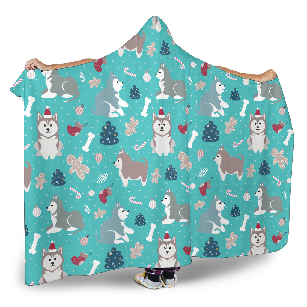 Christmas cute siberian husky puppie pattern Hooded Blanket are custom-made-to-order and handcrafted to the highest quality standards.