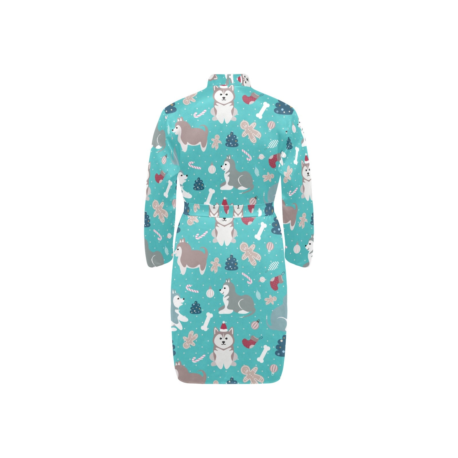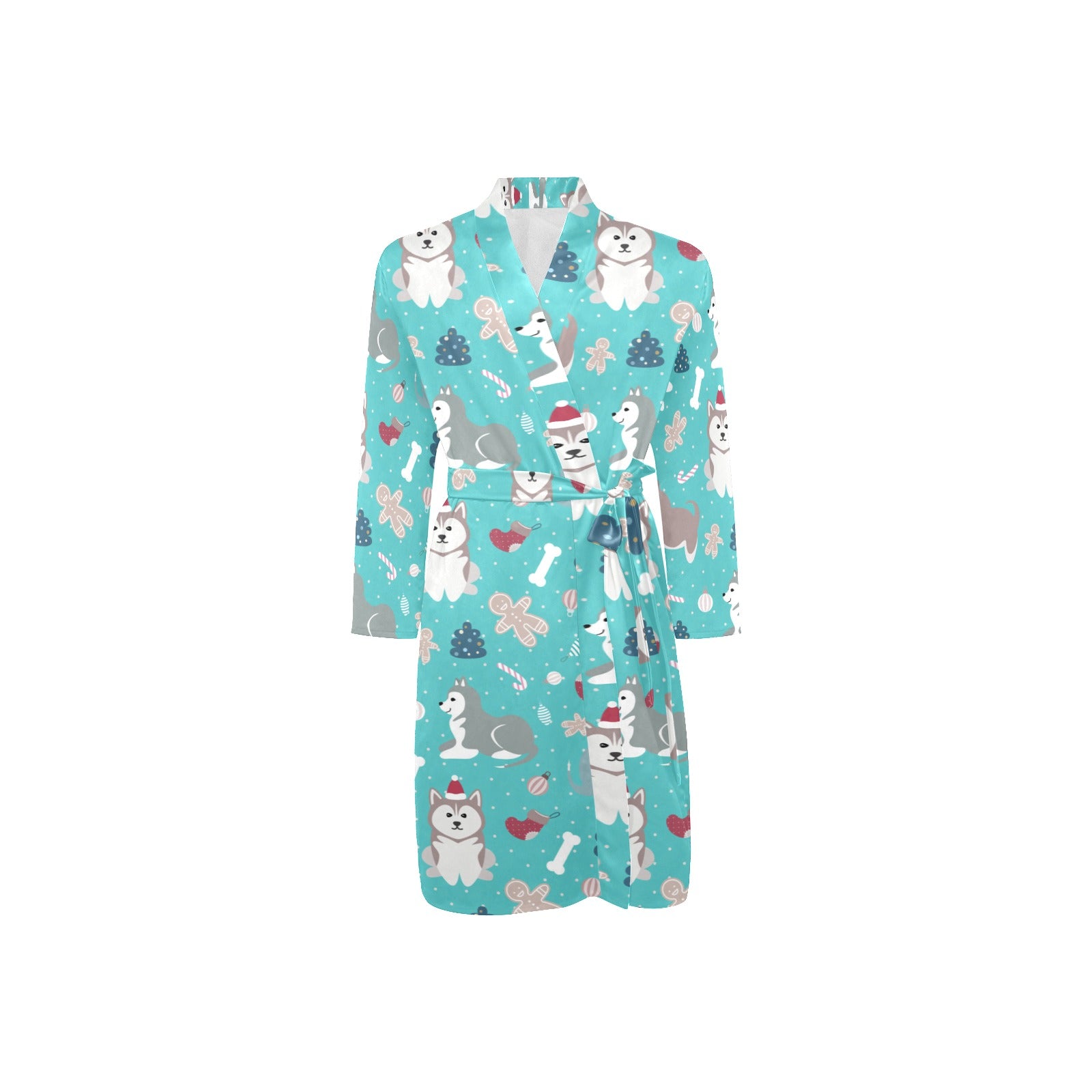 Christmas cute siberian husky puppie pattern Men's Long Sleeve Belted Night Robe