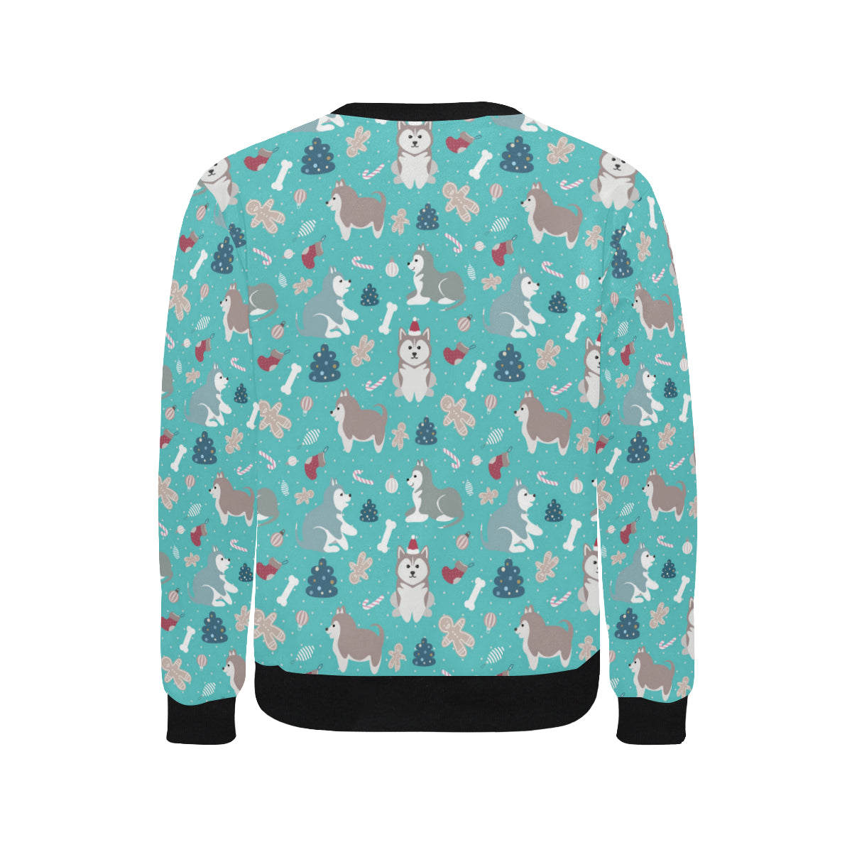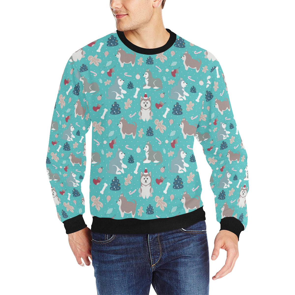 Christmas cute siberian husky puppie pattern Men's Crew Neck Sweatshirt
