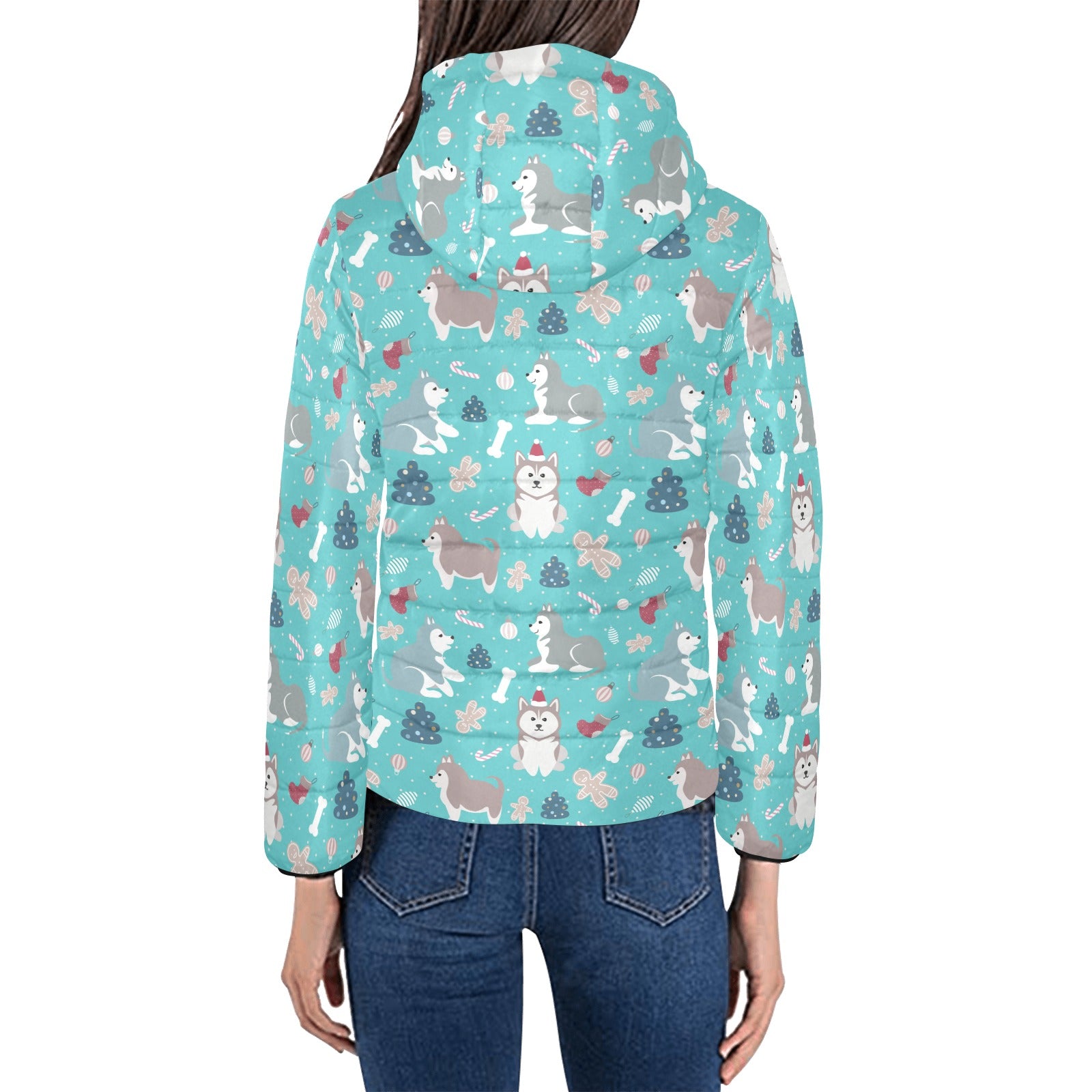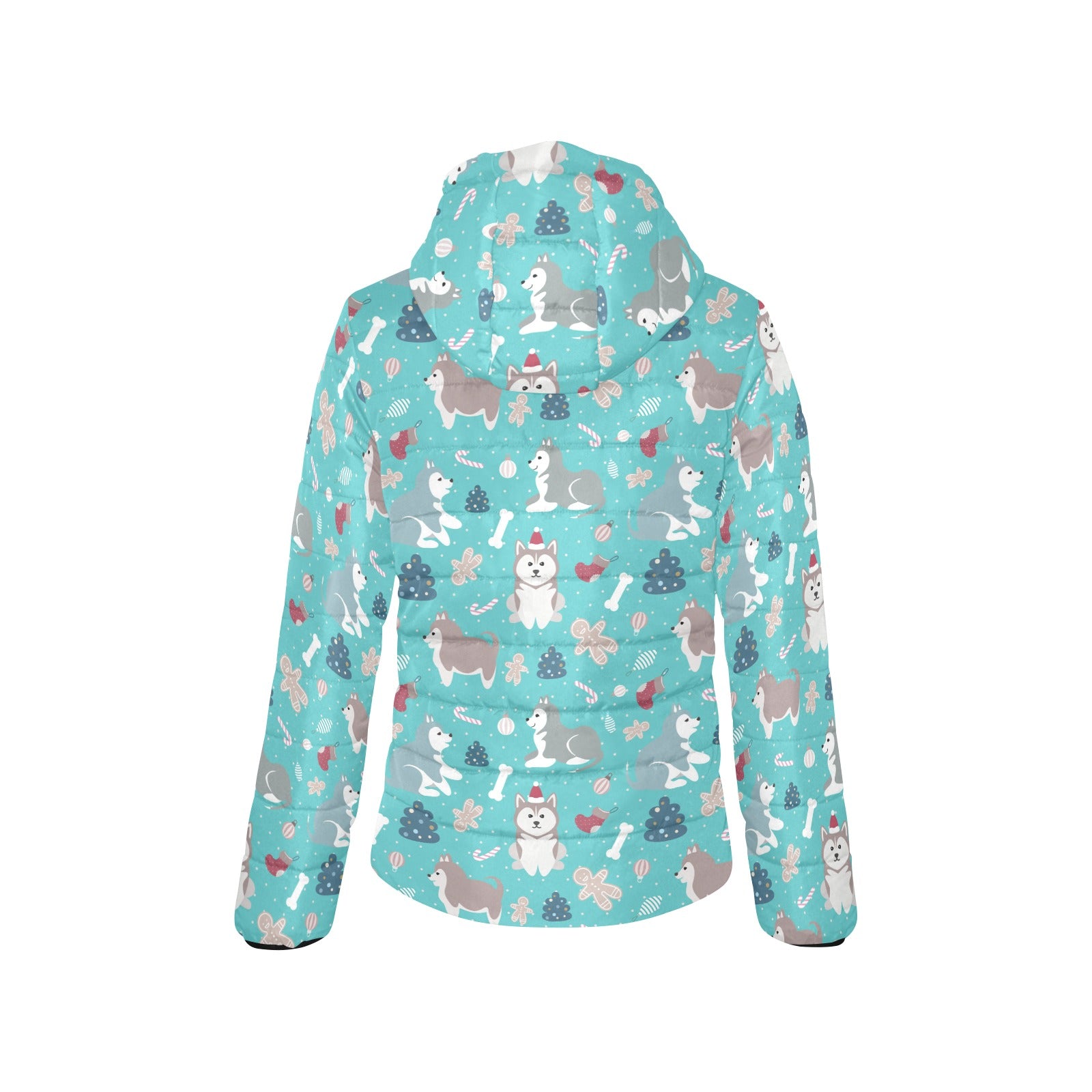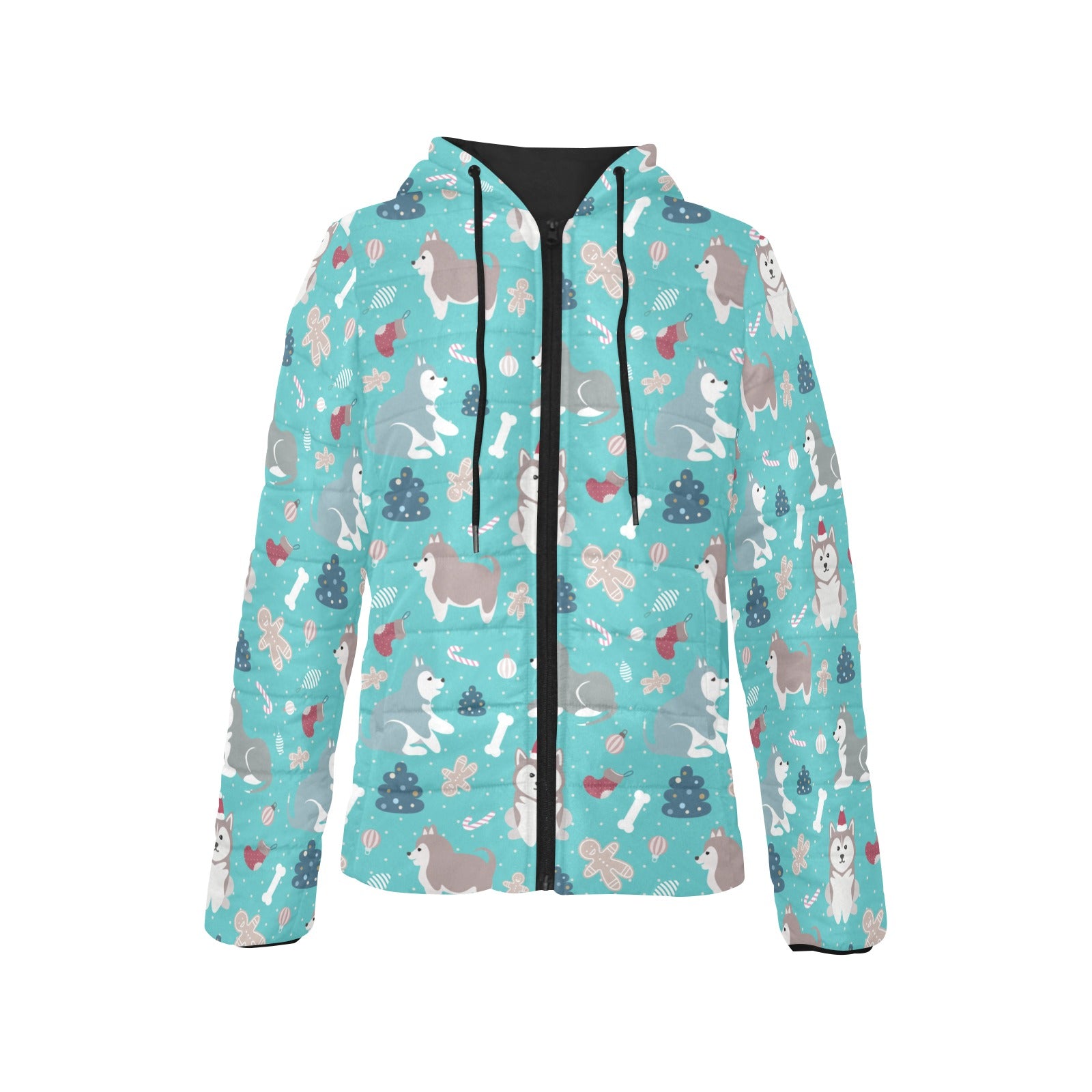 Christmas cute siberian husky puppie pattern Women's Padded Hooded Jacket