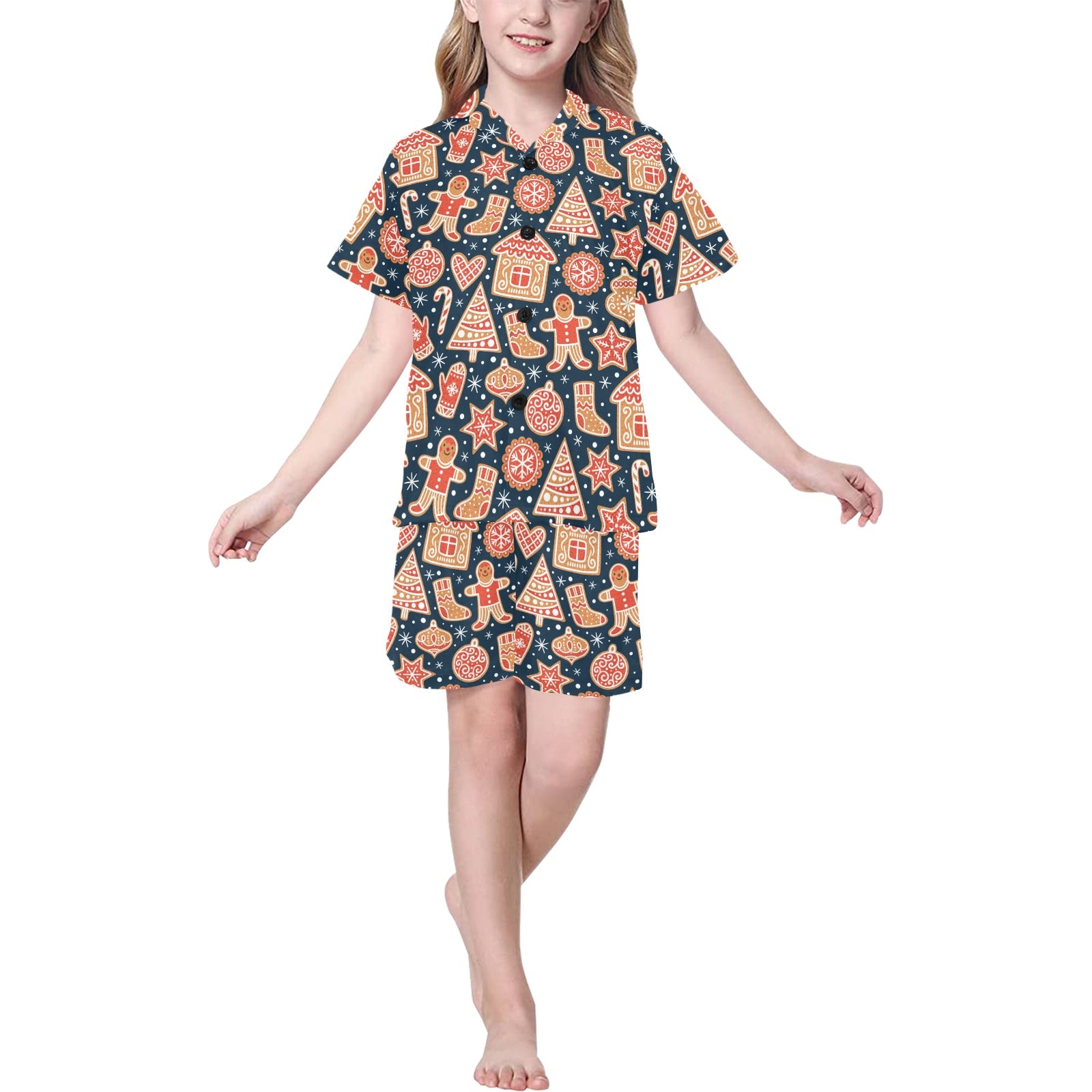 Christmas gingerbread cookie pattern Kids' Boys' Girls' V-Neck Short Pajama Set